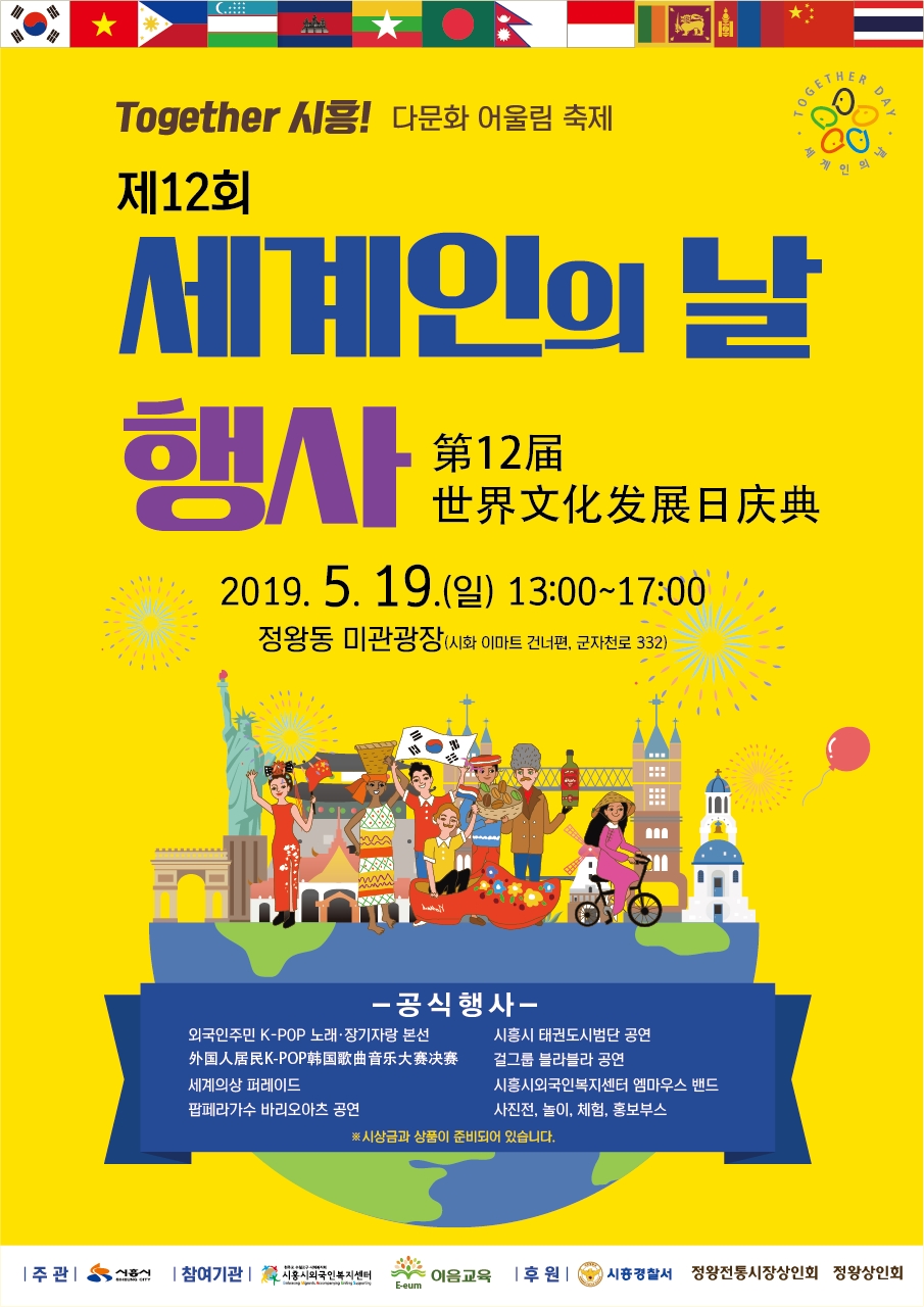 오는 19일 정왕동 미관광장에서 제12회 세계인의 날을 기념해 ‘Togethert 시흥! 다문화 어울림 축제’를 연다.