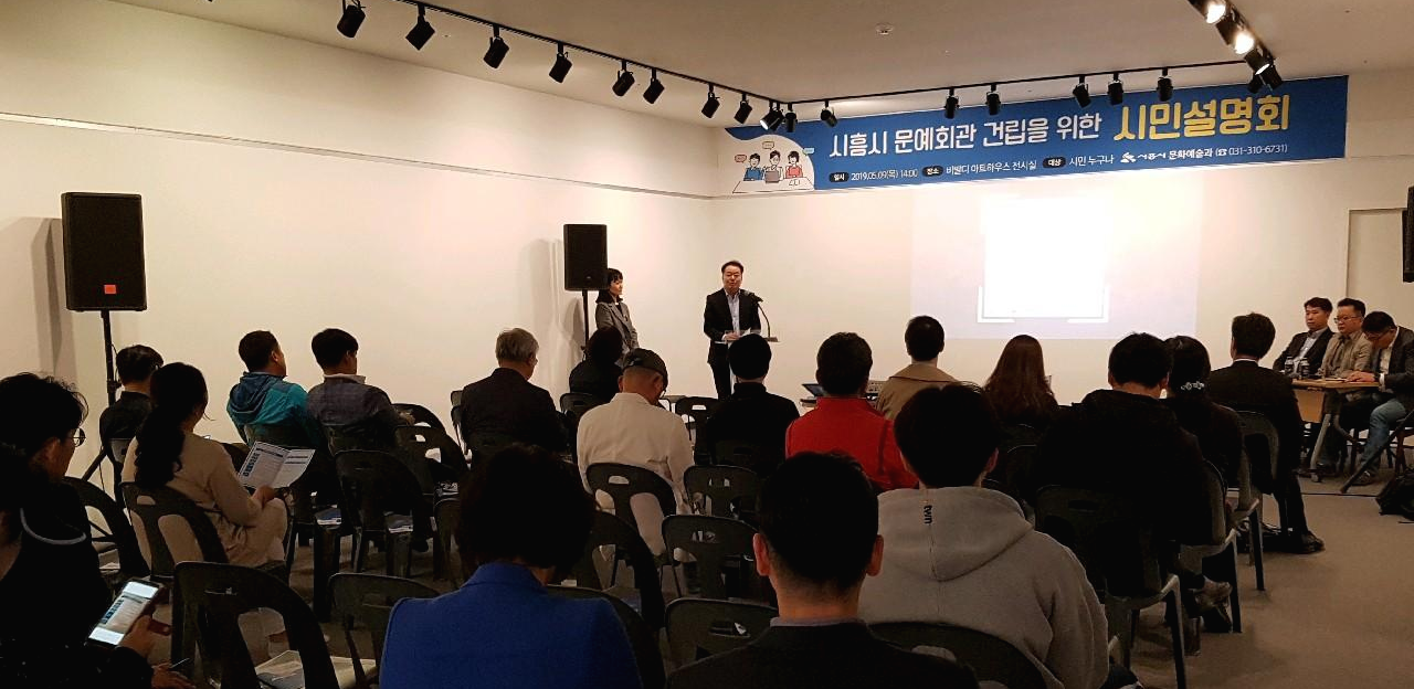 지난 9일 오후 2시 정왕동 비발디아트하우스 전시실에서 문예회관 건립을 위한 시민설명회를 개최했다.