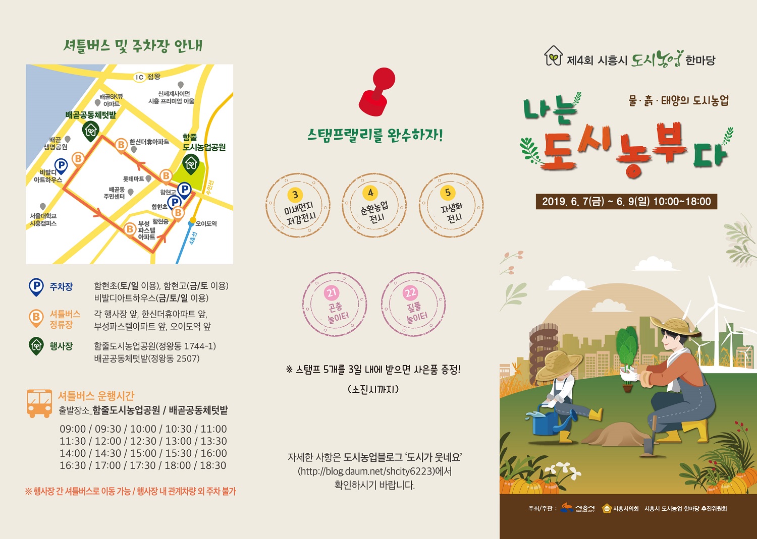 시흥시(시장 임병택)는 도시농업 활성화를 통한 삶의 질 향상을 위해 오는 6월 7일부터 6월 9일까지 사흘간 함줄도시농업공원(정왕동 1774-1)과 배곧공동체 텃밭(정왕동 2507) 일원에서『제4회 시흥시 도시농업한마당』을 개최한다.