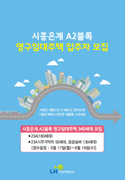 시흥시(시장 임병택)는 오는 17일부터 19일까지 사흘간 시흥은계 영구임대주택의 예비입주자 340세대를 모집한다.