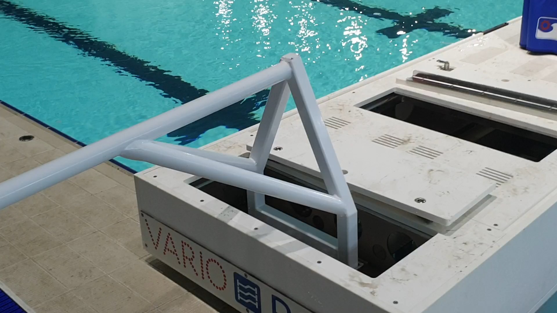 현장에서 50미터 레인으로 변경하는데 얼마나 걸리는가 질문을 하자 시설팀은 “플로팅 바닥을 1.8미터까지 내리는데 3~4분, 벌크헤드를 벽 끝까지 옮기는데 약 15분이 걸린다.”고 답했다. 레인 변경을 하는데 대략 20분 정도가 소요되는 구조다. 레인 변경은 벌크헤드에 에어(air)를 주입해 수면으로 띄운 다음 벌크헤드 양 끝단에 서포트 바(bar)를 끼워 전기 충전식 이동카로 끌고 가는 방식이다.