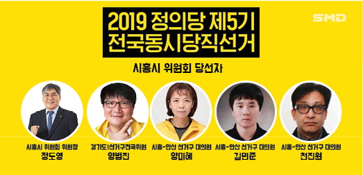 정의당 5기 전국동시당직 선거에 시흥시 위원회에서 시흥시위원회 위원장(1명 서출)에 정도영(정의당시흥시위원회 위원장, ), 경기도 1선거구 전국위원(7명 선출)에 양범진(시흥시위원회 수석부위원장, 만45세), 당대회 대의원 시흥-안산 선거구(5명 선출)에 김민준, 양미혜, 천진원 출마, 모두 당선하였다.