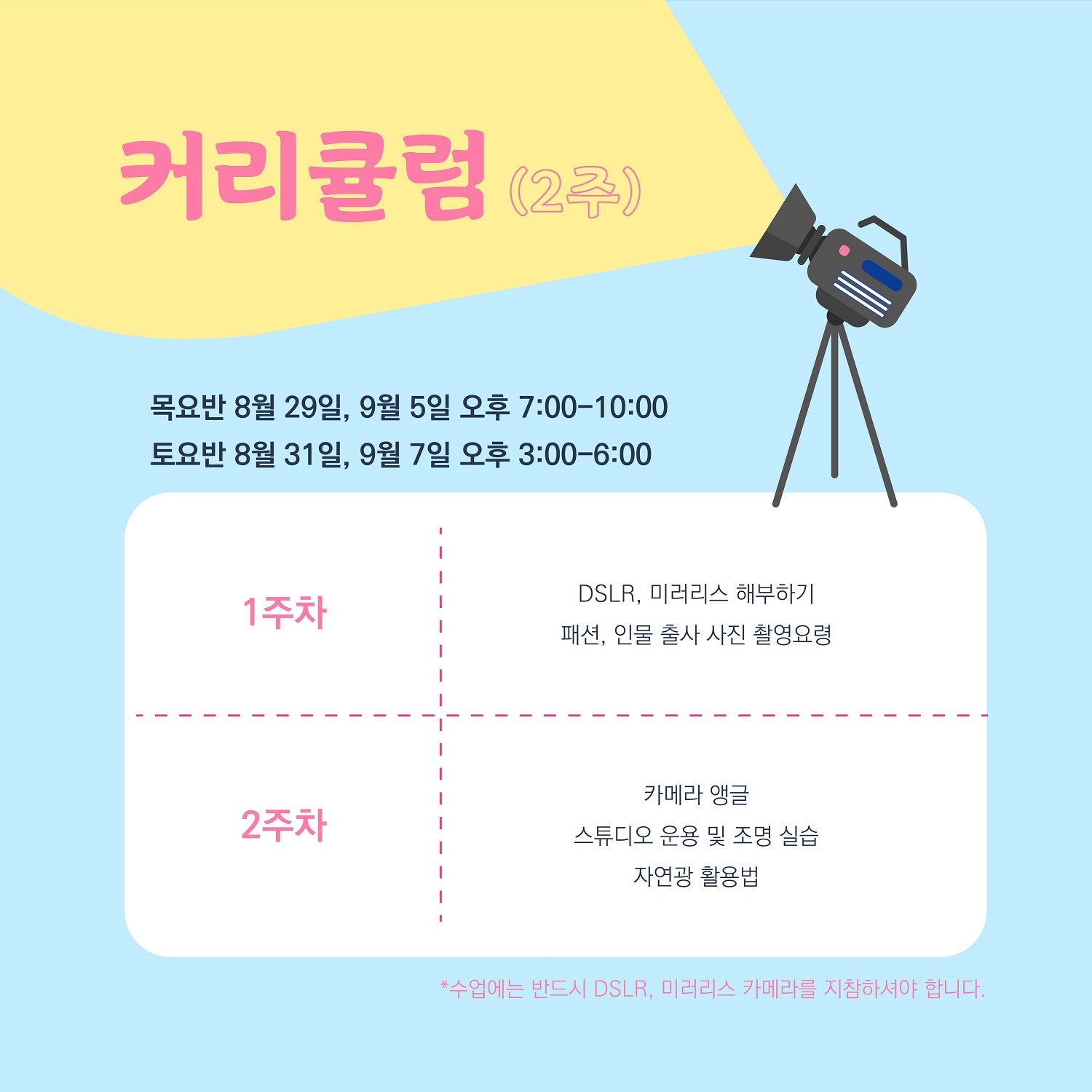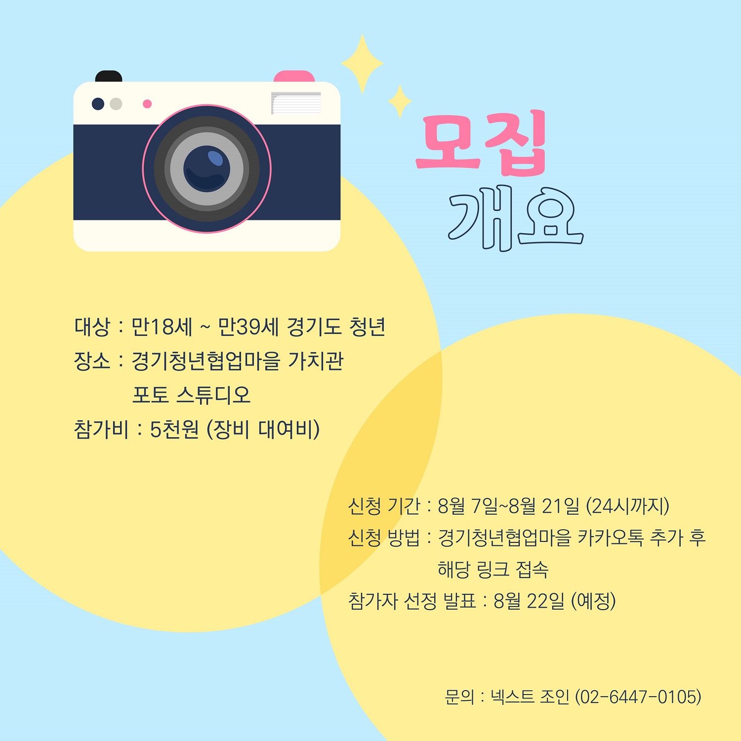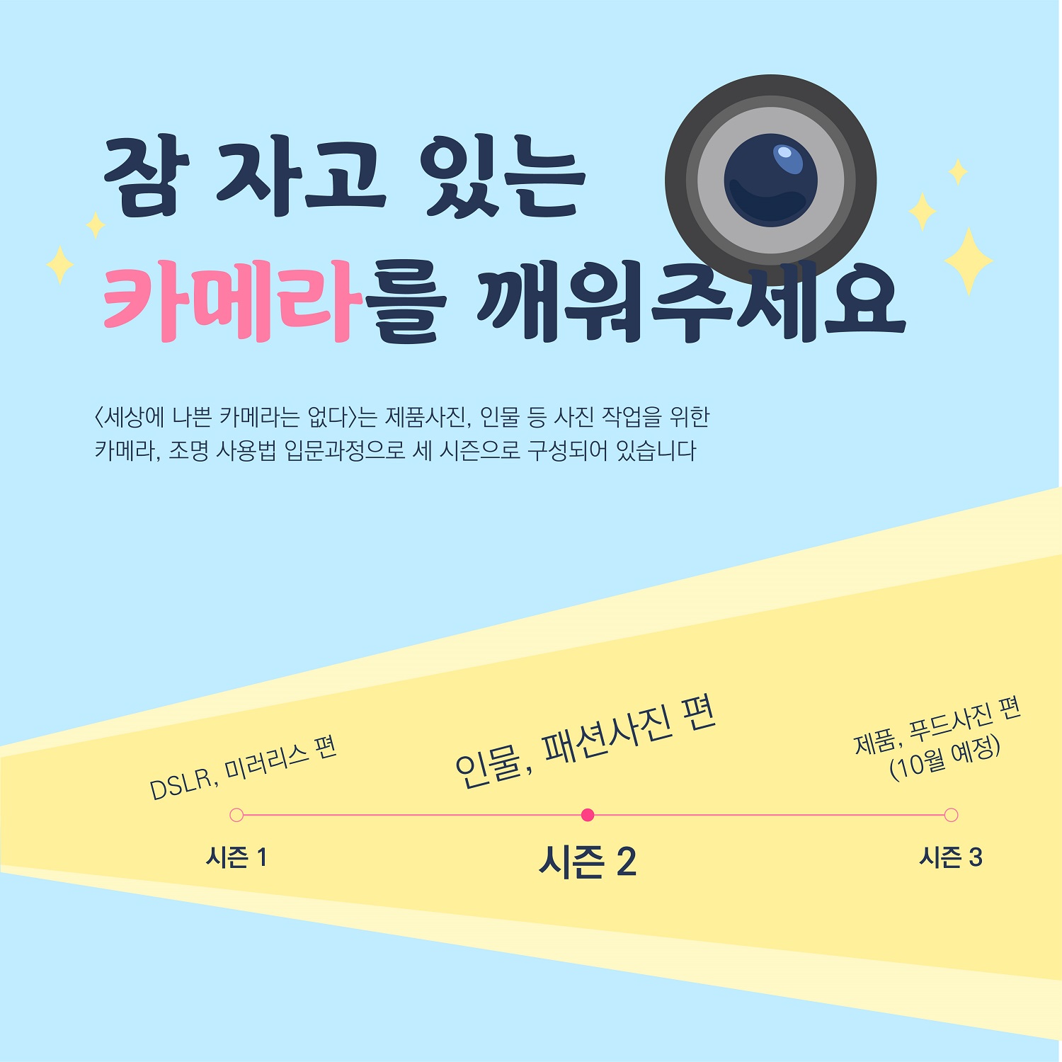 시흥시(시장 임병택)가 운영하는 청년센터인 경기청년협업마을에서 8월 21일까지 세상에 나쁜 카메라는 없다 시즌 2(이하 세나카) 수강생을 모집한다.