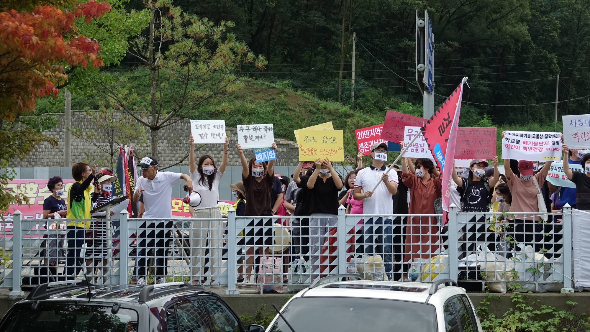 9월 5일(목) 오전 10시, 시흥시청 정문 앞에 관광버스 6대가 정차했다. 주변 도로에는 개인 승용차들이 긴 줄을 대며 주차했다. 시흥시가 정왕동 ‘신시흥전력소’ 인근에 추진 중인 자원순환특화단지를 반대하는 시민대책위원회(이하, 백지화비대위)가 집회하는 날이다.