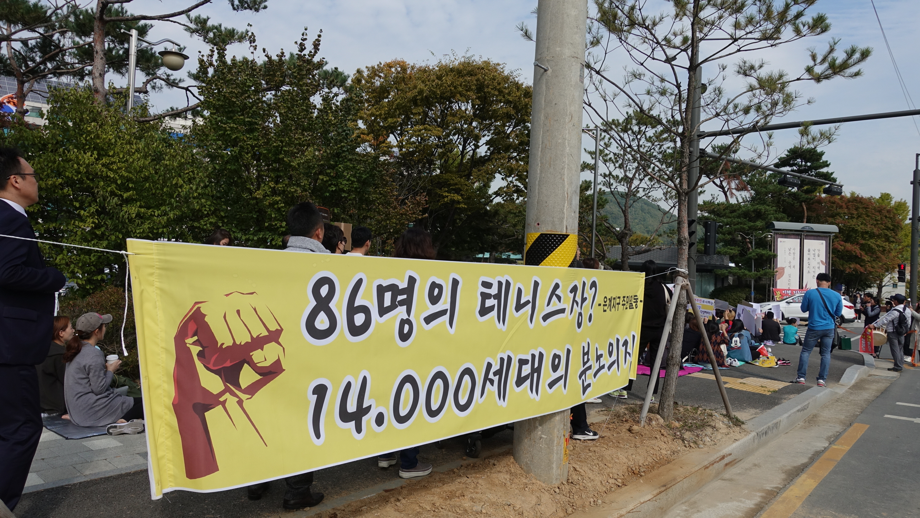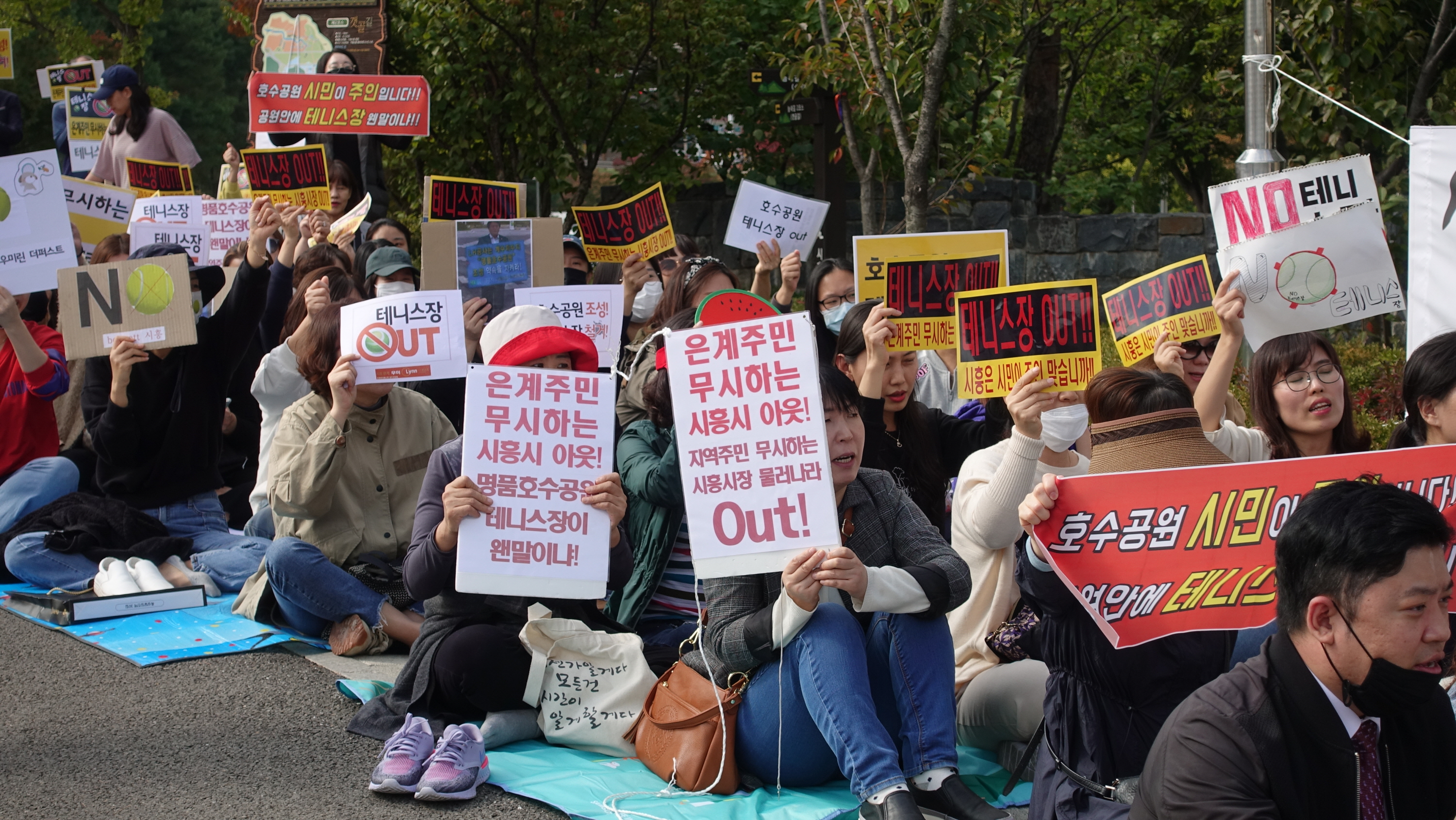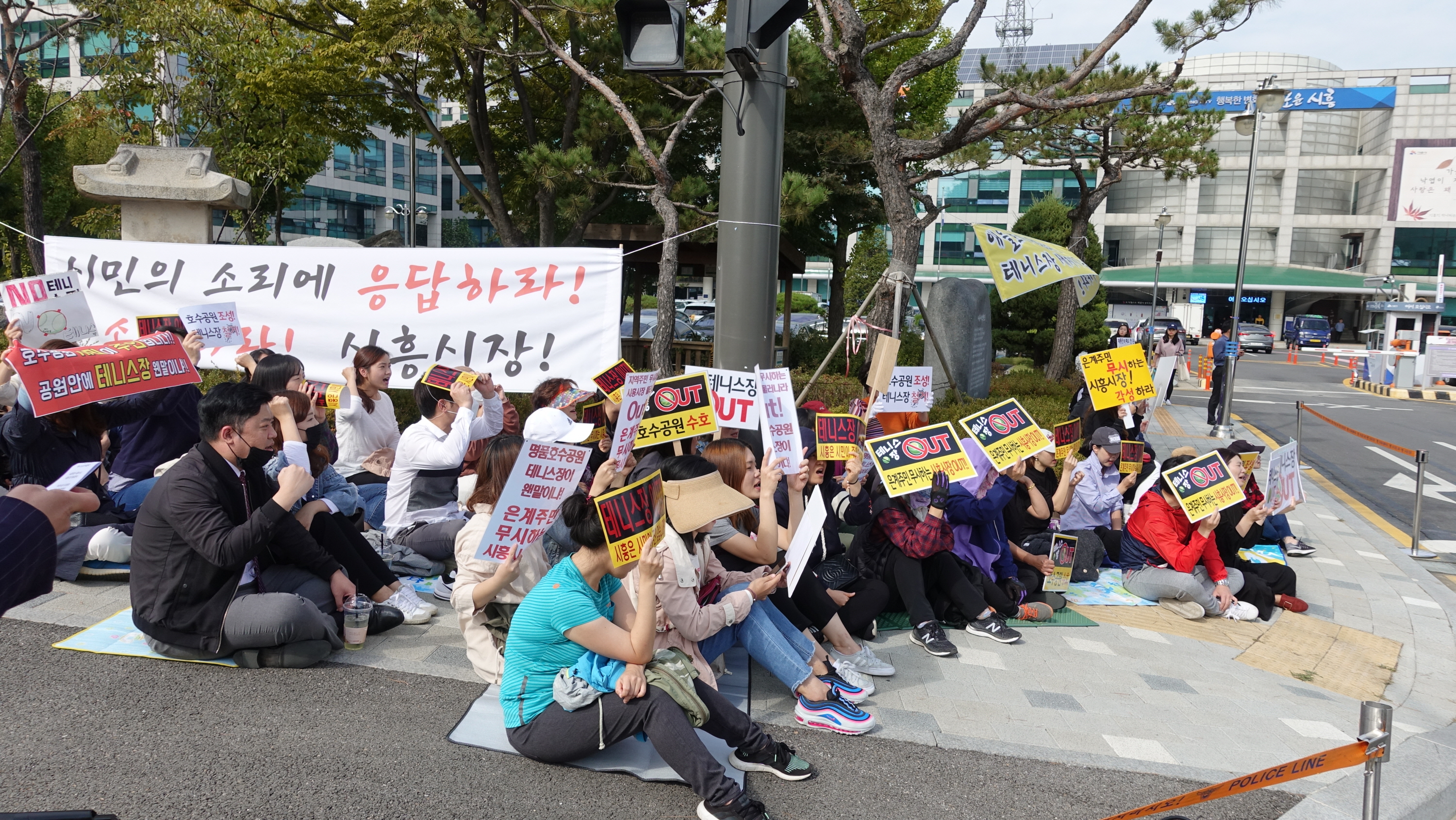 은계지구 입주민들이 1차 집회(9일 호수공원부지 내)에 이어 17일(목) 오후 1시에 시흥시청 앞에서 2차 집회를 열었다. 이날 모인 300여명의 시민들은 “호수공원 조성! 테니스장 철거!”, “은계주민 무시하는 시흥시아웃!”, 공원 안에 테니스장 웬말이냐” 등의 피켓과 현수막을 들고 '은계지구 호수공원 내 테니스장 조성에 대한 반대' 목소리를 외쳤다.