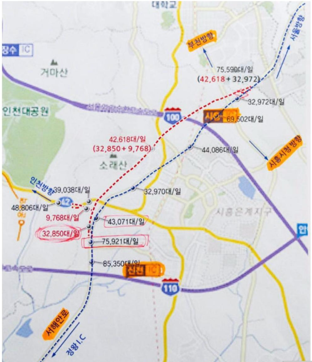 “2007년 민자 유료도로 제안부터 지금까지 시흥시 행정은 크게 두 가지를 실책했습니다. 첫째, 배곧신도시 광역교통개선대책으로 오이도역에서 월곶삼거리, 제2경인고속도로 신천 JC, 외곽순환도로 시흥IC 간을 반영하지 않았습니다. 즉, 신천 IC 에서 시흥 IC 간 구간도 광역교통개선대책의 일환으로 했어야 하는데 그걸 안 했습니다. 아마도 이게 민자유료도로 때문에 안 했을 것입니다. 이것 실책입니다.