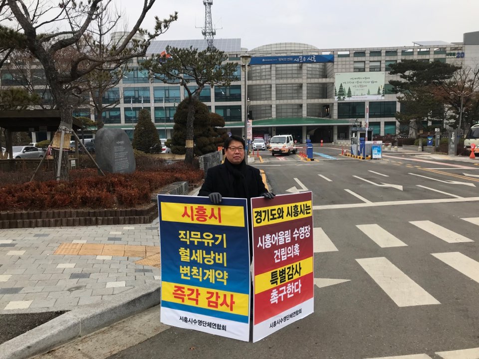 새해 업무 첫날인 1월 2일 시흥시청 앞에서 1인 시위를 벌인 시흥시수영연맹 안준상 회장은 "2016년 시흥시 최초, 시흥시 유일 50M 수영장이 생긴다고 시민들은 모두 반겼지만, 지금 상황에서는 50M를 제대로 이용도 못할 뿐 아니라 수영장 반 쪽만 개관해 시민들의 기대심리를 완전히 무너뜨렸다."라며, "수영장 건립 과정에서 수영인들은 철저히 외면당했다.”라고 분개했다.