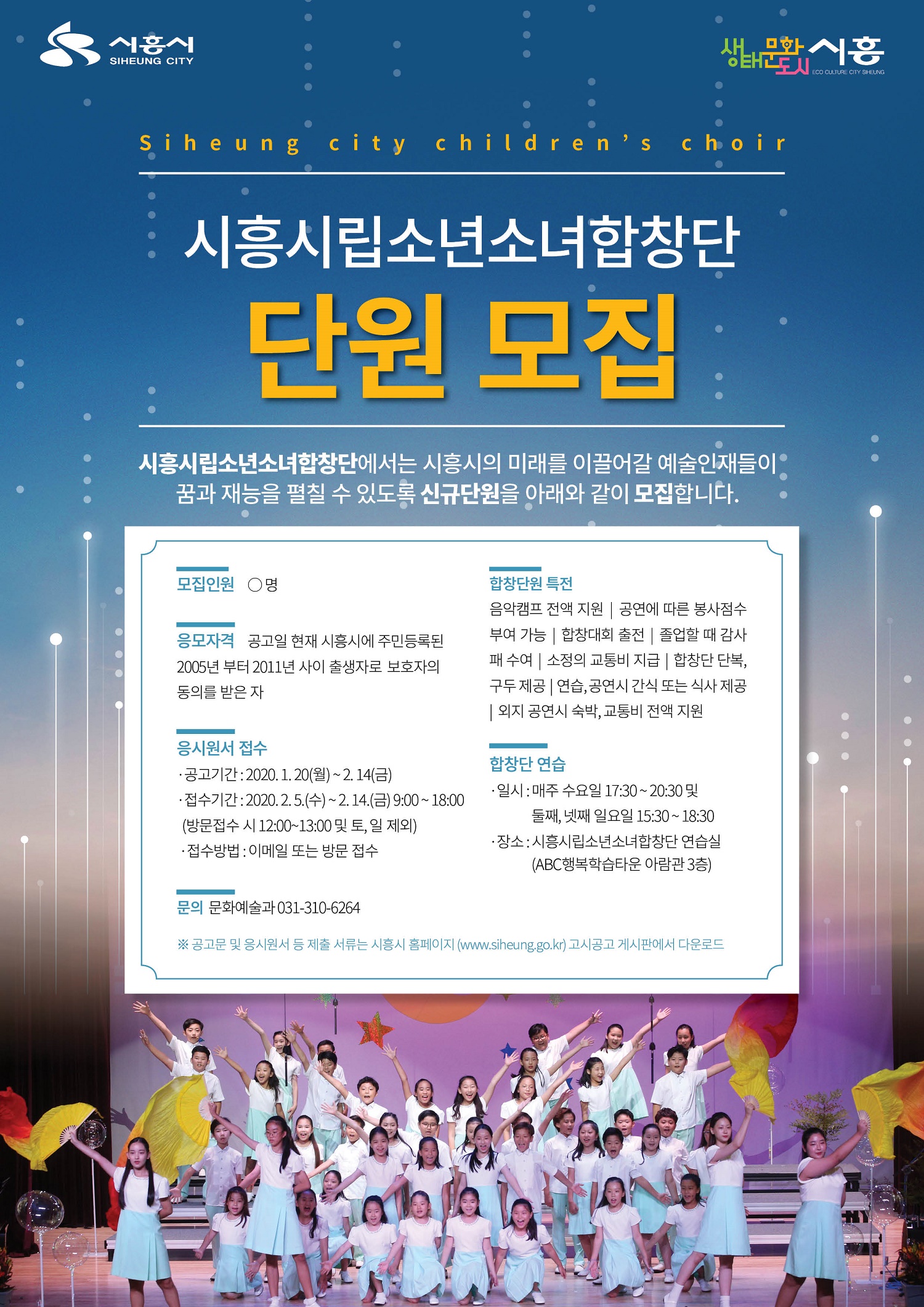 시흥시(시장 임병택)가 오는 2월 5일부터 14일까지 시립소년소녀합창단 신규 단원을 공개 모집한다.