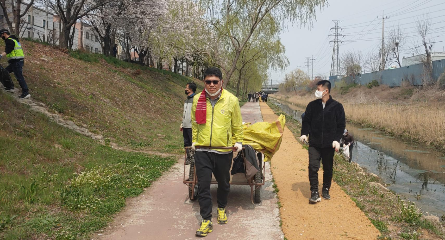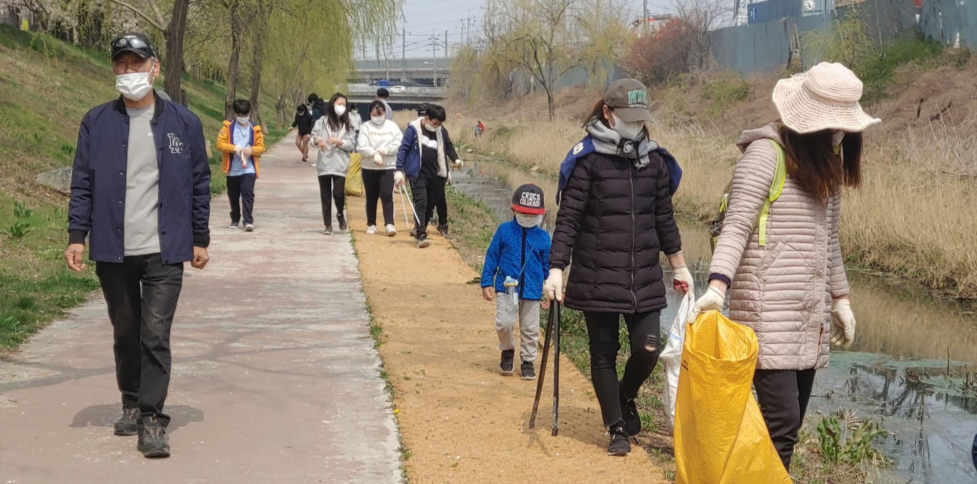 이에 지난 11일, 죽율동 주민들 50여명이 시흥천 일대에 모여 1.2km 구간을 돌며 더러워진 하천을 청소했다. 이미 일부 주민들은 시흥천이 시민들에게 산책과 조깅 등 동네 마실 공간으로 사용될 수 있도록 두 달 전부터 땅속에 묻혀있는 폐비닐과 하천 주변에 버려져 있는 쓰레기를 치우며 하천 살리기 운동에 돌입한 상태다.