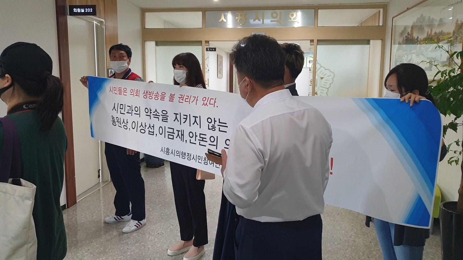 지난 18일(목) 시흥시의회 자치행정위원회는 “행정사무감사 기간 동안 생방송으로 하지 않고 다음날 녹화방송을 올리겠다”는 공지를 유튜브에 올렸다. 이에 대해 의행단은 21일(일) “시민들과 한 약속을 자기 마음 대로 바꾸는 의원들은 사퇴하라”는 강한 어조의 논평을 내고, 다음날인 22일(월) 오전에 의회에 방문해 생중계를 반대한 의원들을 만나 항의를 했다.