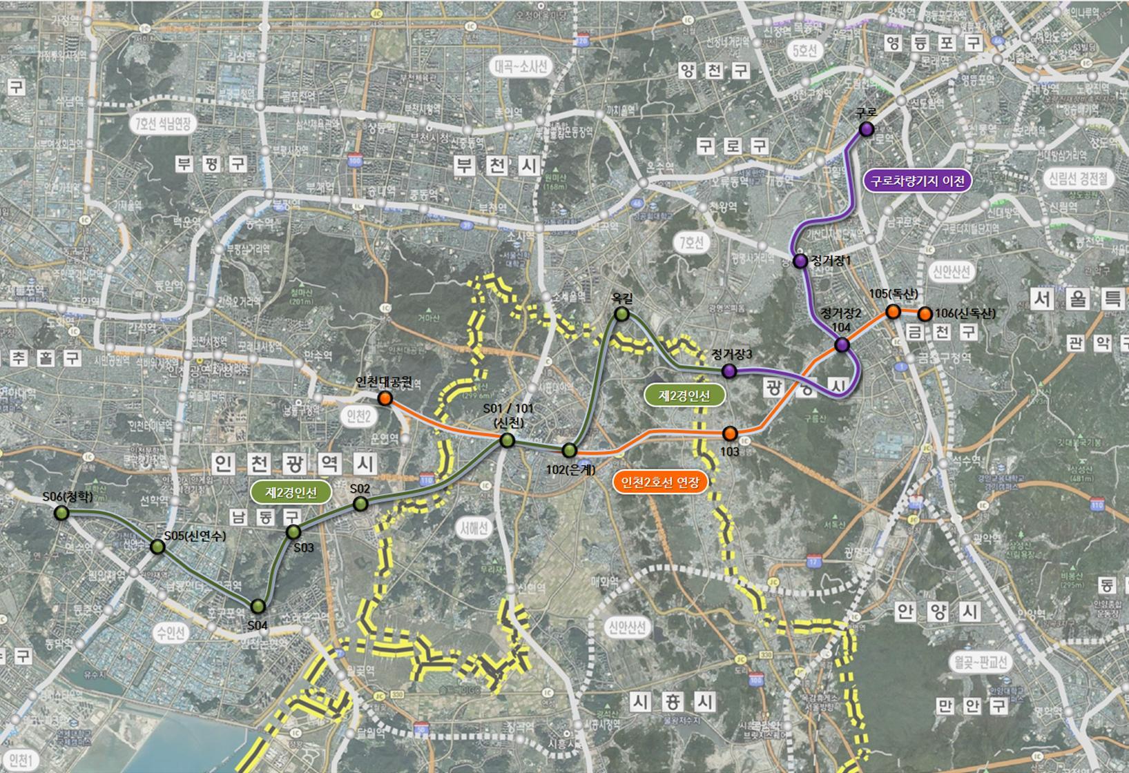 제2경인선은 인천 청학에서 시흥 신천역(서해선)과 은계, 부천 옥길을 경유해 구로차량기지 이전사업과 연계, 노량진역까지 운행 예정인 광역철도사업이다.