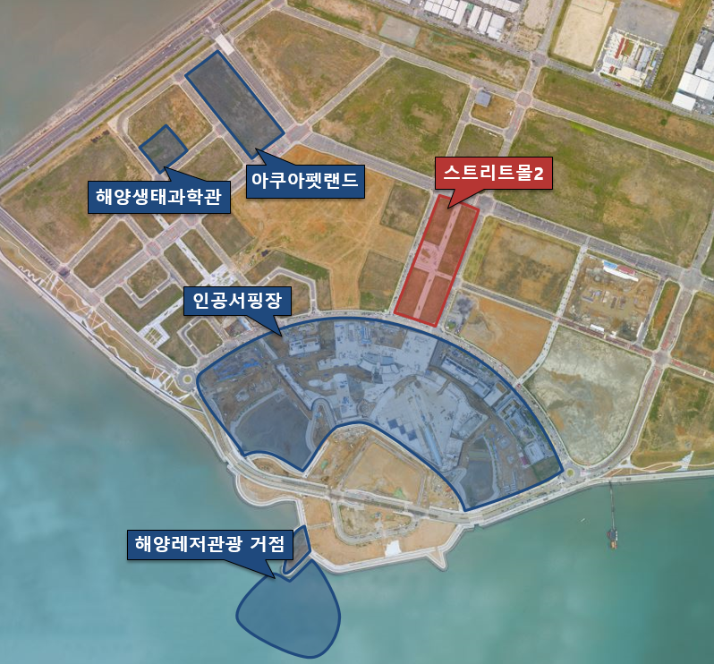 웨이브파크를 중심으로 해양레저 복합단지 조성사업도 추진하고 있다. 대규모 숙박·주거 시설과 수변 상업시설 등이 들어서 한 곳에서 서핑과 쇼핑, 숙박이 가능하게 될 뿐 아니라, 20년간 8조 8천억원의 생산유발과 5만 4천명의 고용효과를 낼 것으로 기대된다.