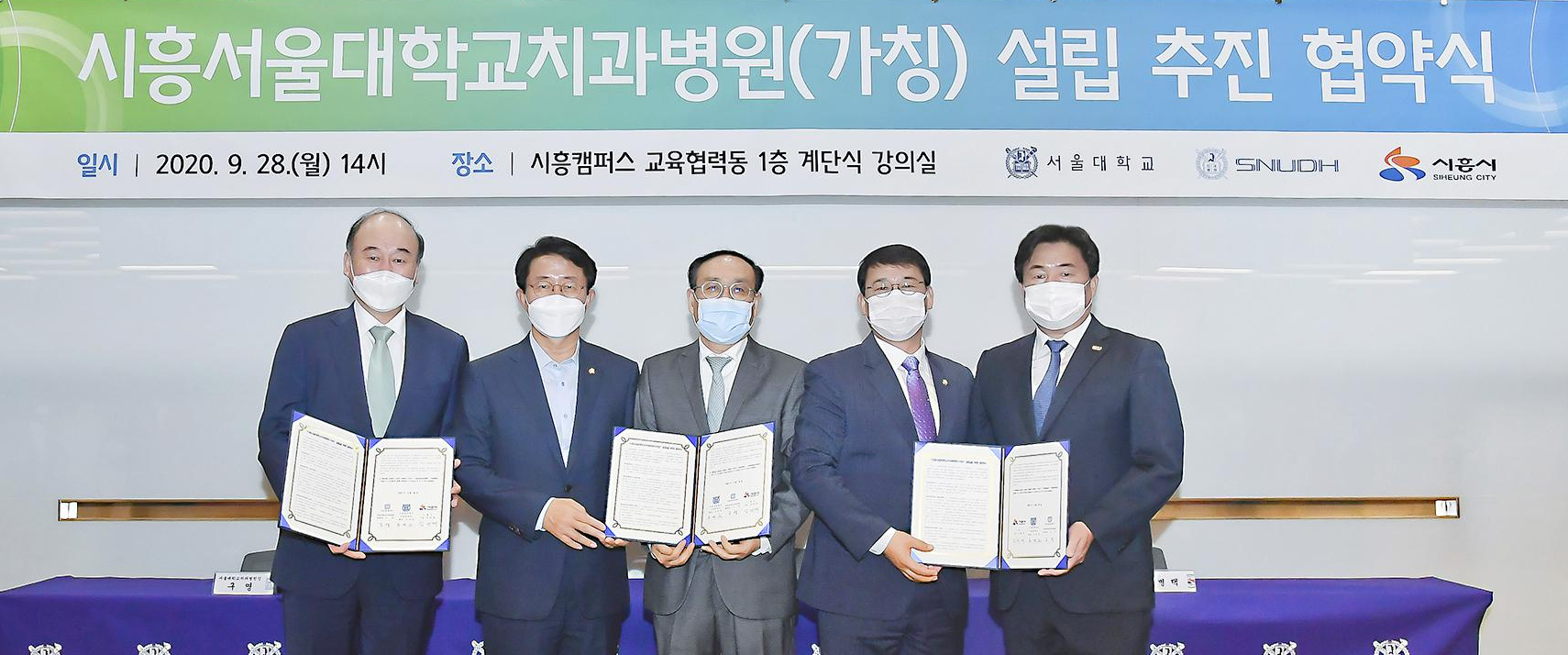 시흥시(시장 임병택)는 28일 서울대학교 시흥캠퍼스 교육협력동에서 서울대학교, 서울대학교 치과병원과 함께 ‘시흥서울대학교치과병원(가칭) 설립을 위한 협약'을 체결했다.