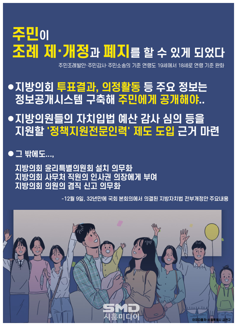 12월 9일, 국회 본회의에서 지방자치법 전부개정안이 의결되었다. 32년만의 손을 본 것이다.