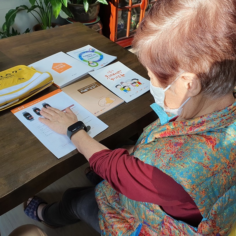 ‘배회감지기 무료 대여 사업’은 손목시계형 배회감지기에 위성항법시스템(GPS)이 내장돼 있어, 보호자의 핸드폰에 설치된 모바일 앱으로 치매어르신의 현 위치를 실시간으로 확인할 수 있다.