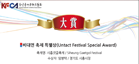 시흥시(시장 임병택) 대표축제인 시흥갯골축제가 ‘2021년 대한민국축제콘텐츠대상’에서 비대면 축제 특별상을 수상했다.
