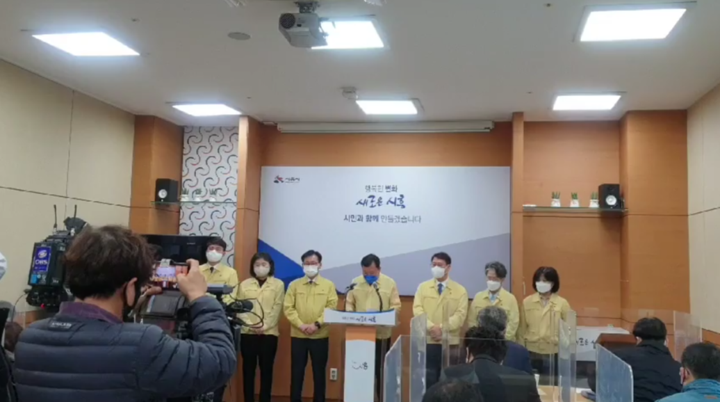 시흥시의회 더불어민주당 소속 시의원들이 8일 오전 11시에 시청 브리핑룸에서 기자회견을 열고 소속 시의원의 광명시흥지구 투기의혹에 대해 사과했다.