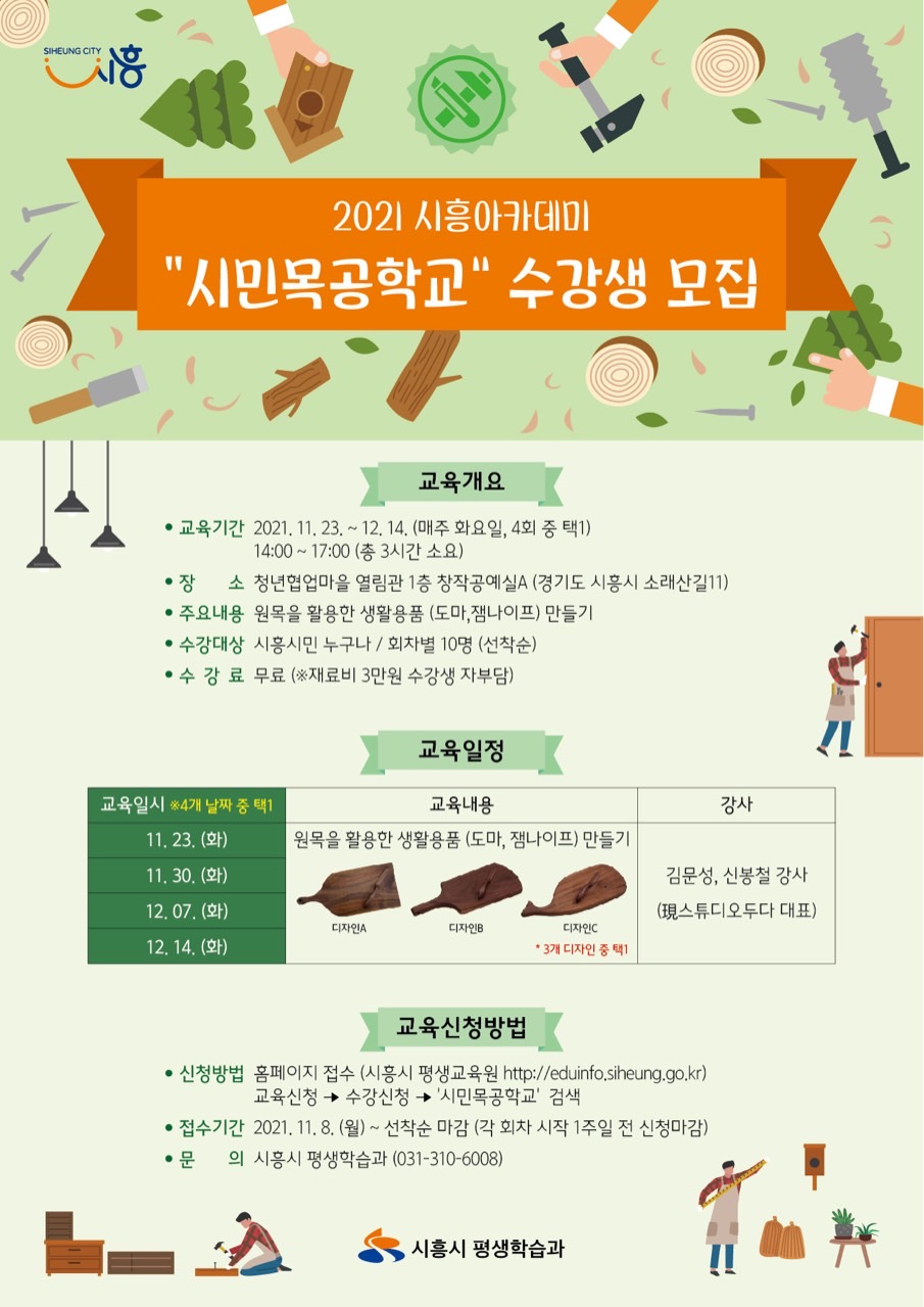 시흥시(시장 임병택)가 지난 8일부터 시흥아카데미「시민목공학교」 수강생을 모집했다.