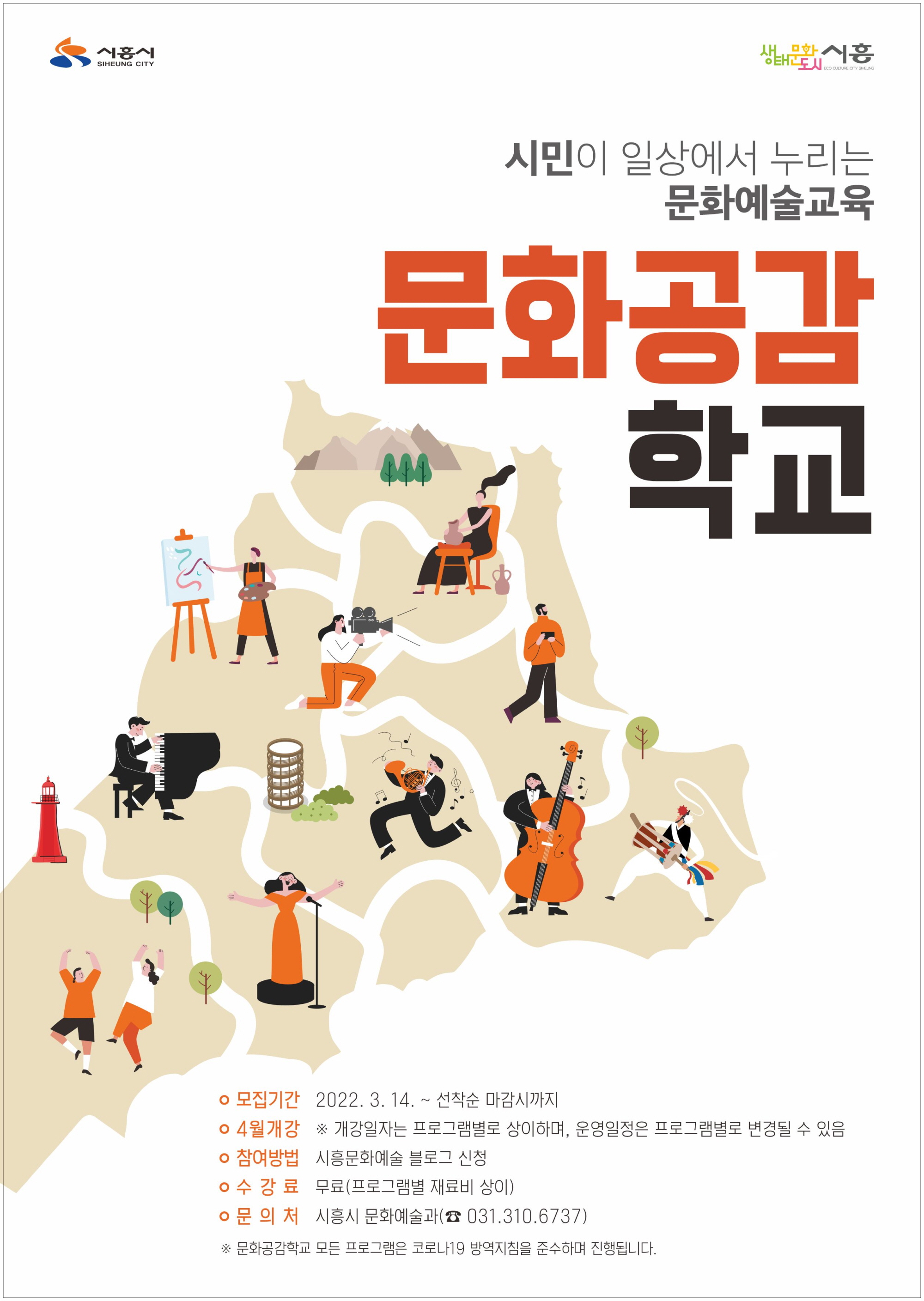 시흥시(임병택 시장)는 시민의 일상 회복을 돕는 ‘2022 문화공감학교 상반기 문화예술교육’ 프로그램 참여자를 모집한다.
