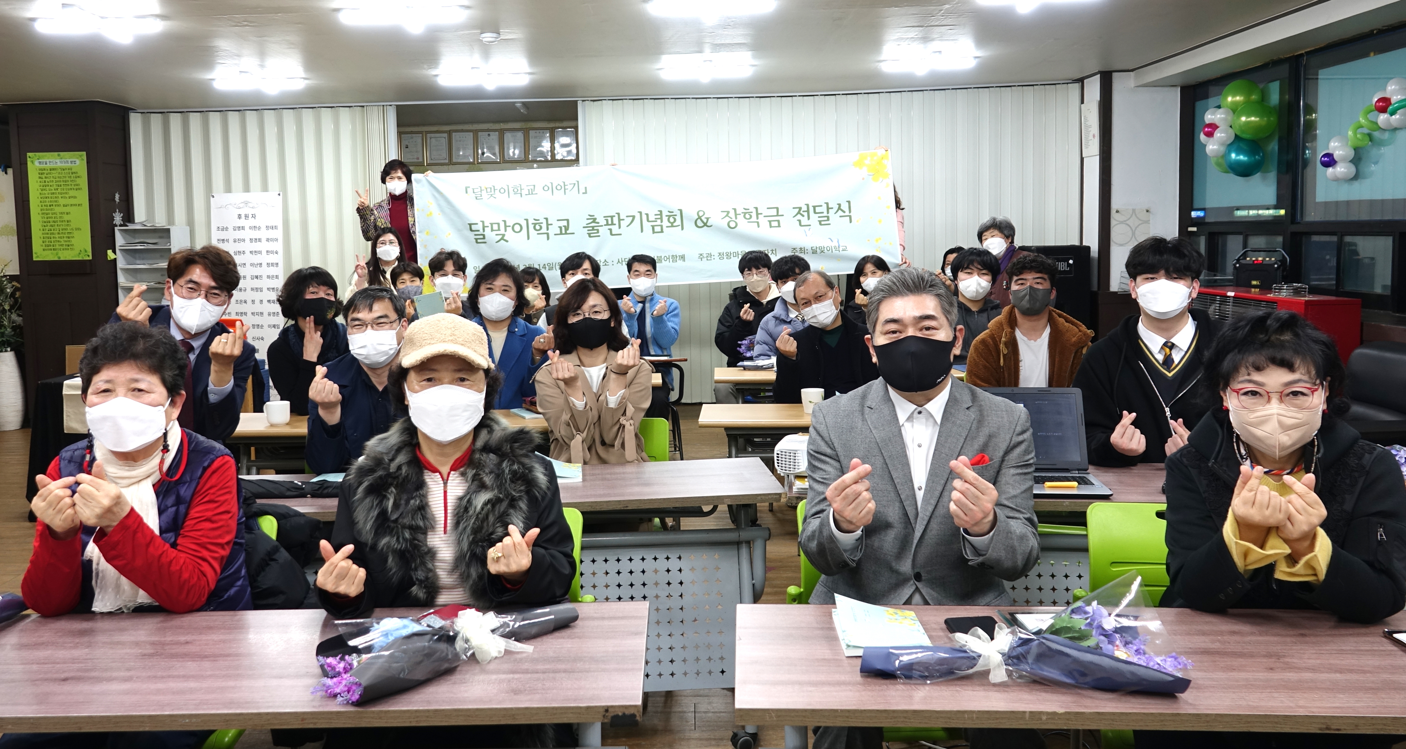 지난 3월 14일 (사)더불어함께 4층 교육실에서 경기스마트고 전병석 교사의 사회로 진행된 출판기념회는 경기스마트고 변00 외 4명의 장학생들과 달맞이학교 주인공 어르신 학생 정태희, 이한순, 시흥시 의원, 시청관계자, 가수 편승엽, 정왕교육자치 회원들을 비롯한 내빈 20여명이 참석한 가운데 장학증서를 전달했다.
