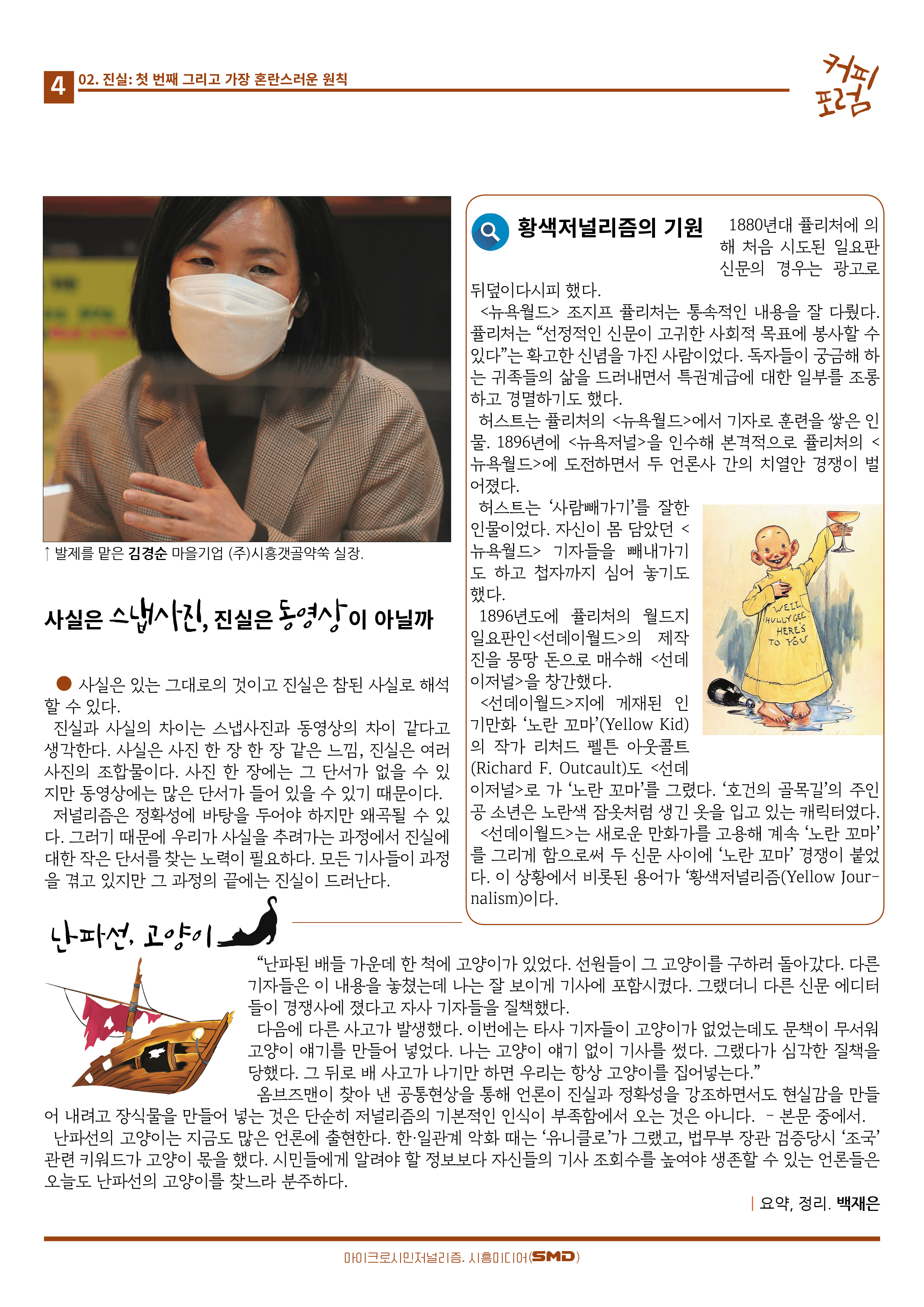 | [커피포럼] 저널리즘은 무엇을 위해 존재하는가 (0) | 2022.03.27 |