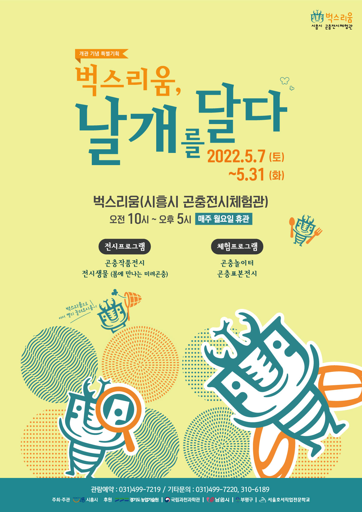 더 자세한 사항은 벅스리움 홈페이지(bugsrium.siheung.go.kr)를 통해 확인할 수 있고, 관람·예약은 벅스리움 안내데스크(031-499-7219)로, 기타 문의 사항은 시흥시농업기술센터 농업기술과(031-499-7220, 310-6189)로 하면 된다.