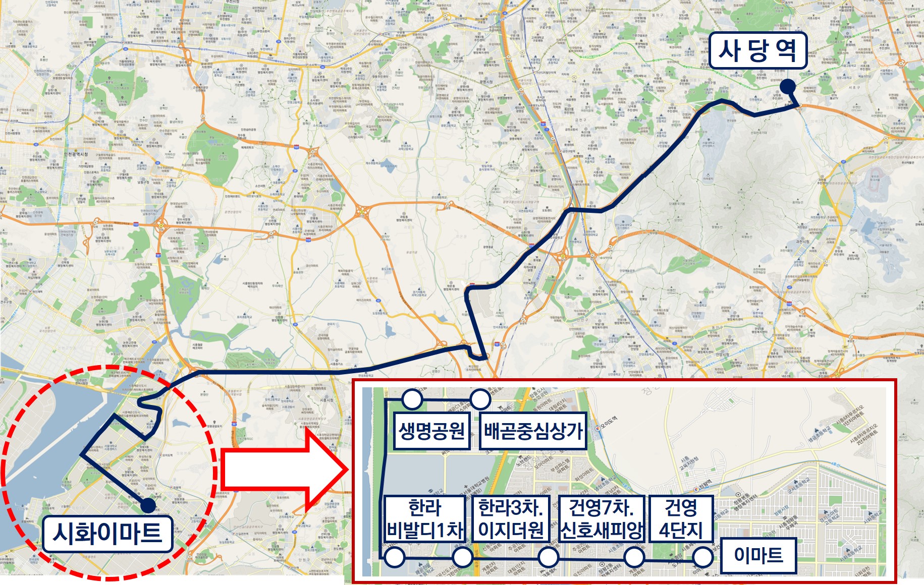 이마트 시화점을 출발해 정왕동과 배곧신도시를 지나 정왕IC를 거쳐 강남순환로를 통해 사당역에 도착하는 노선으로, 이마트 시화점에서 사당역까지 평일 기준 35회(이마트 기준 첫차 오전 5시, 막차 오후 10시) 운행한다.