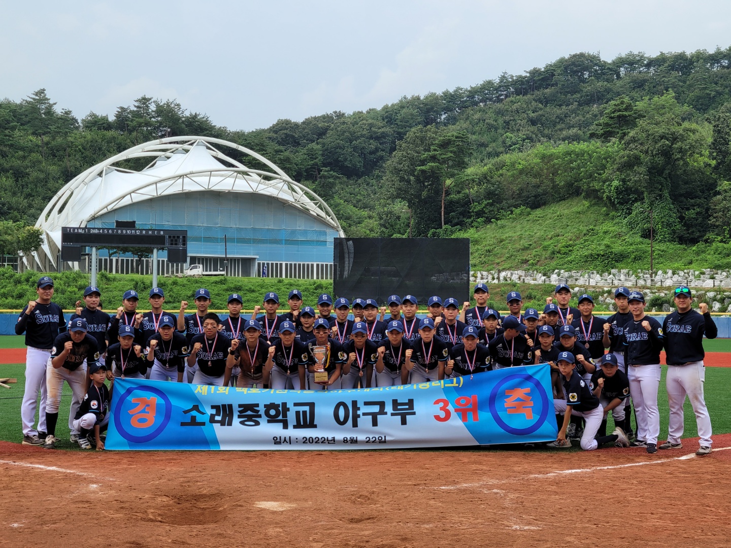 소래중학교(학교장 한상연) 야구부가 제1회 백호기전국중학야구선수권 대회에서 승승장구하며 3위 입상하였다. 소래중학교 야구부는 지난 6월에 열린 제69회 전국중학교야구대회에서도 3위에 입상한 바 있어 이번 대회를 기점으로 명실상부 전국 중학 야구의 강자임을 입증했다.