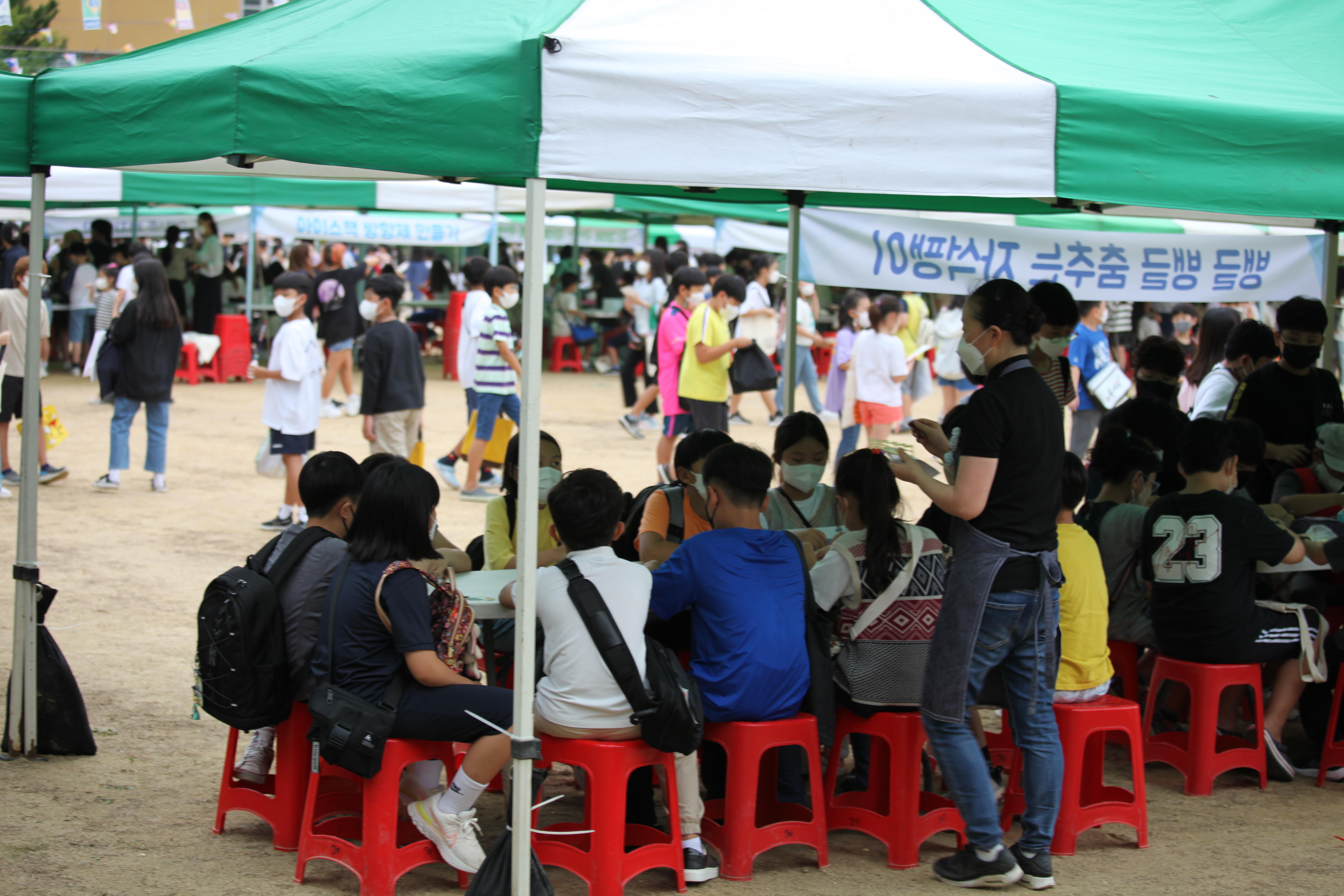 학생들의 장기자랑이 체육관에서 열리는 동안 120명 마을강사들은 각자 맡은 역할과 부스에서 체험거리들을 준비하고 점심시간을 전, 후로 학년을 나누어 체험 시간을 배정받았다. 다소 뜨거웠던 가을날, 비록 마스크를 착용한 상태였지만 학생들의 활기찬 움직임은 3년 만의 축제에 한껏 들떠 있었다.