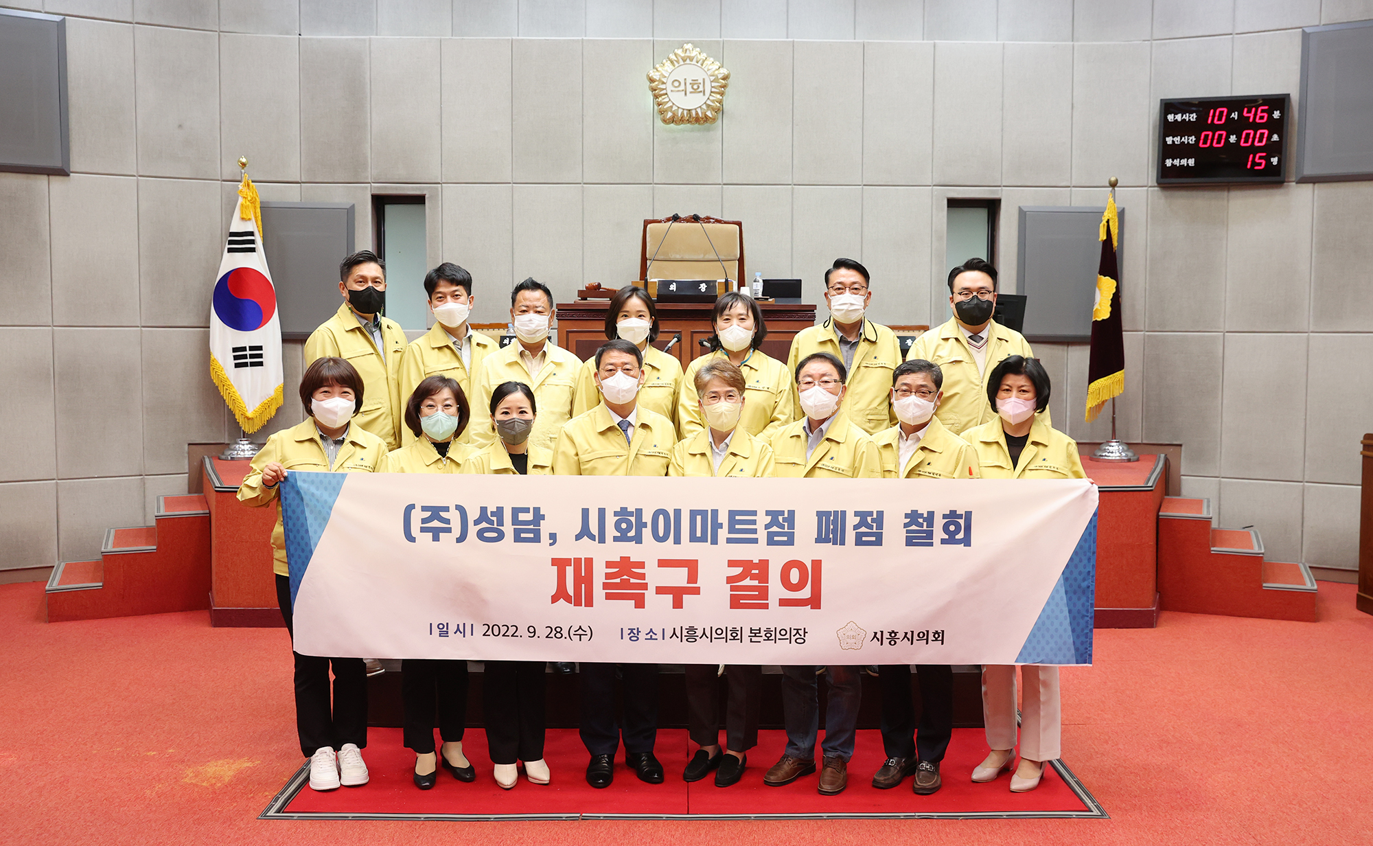 △한국전력공사, 시흥시 전력구 사업 대책 마련 촉구 결의안을 대표발의한 오인열 의원은 제안설명을 통해 “한전이 주민 의견 수렴 없이 진행한 전력구 사업을 즉시 중단하고 앞으로의 사업 추진에 책임을 다할 것”을 촉구하고, △성담, 시화이마트점 폐점 철회 재촉구 결의안을 대표발의한 박춘호 의원은 “(주)성담 시화이마트점의 폐점은 직원 600여 명에 대한 강제해고 살인이며, 정왕동 지역 경제를 붕괴시키는 소상공인에 대한 폭력”이라며 “향토기업으로서의 진정성과 책임 있는 자세를 보여줄 것, 근로자들이 원하지 않는 희망퇴직 권고 조치를 중단할 것, 조속한 시일 내에 시화이마트점 폐점을 철회할 것”을 강력하게 촉구했다.