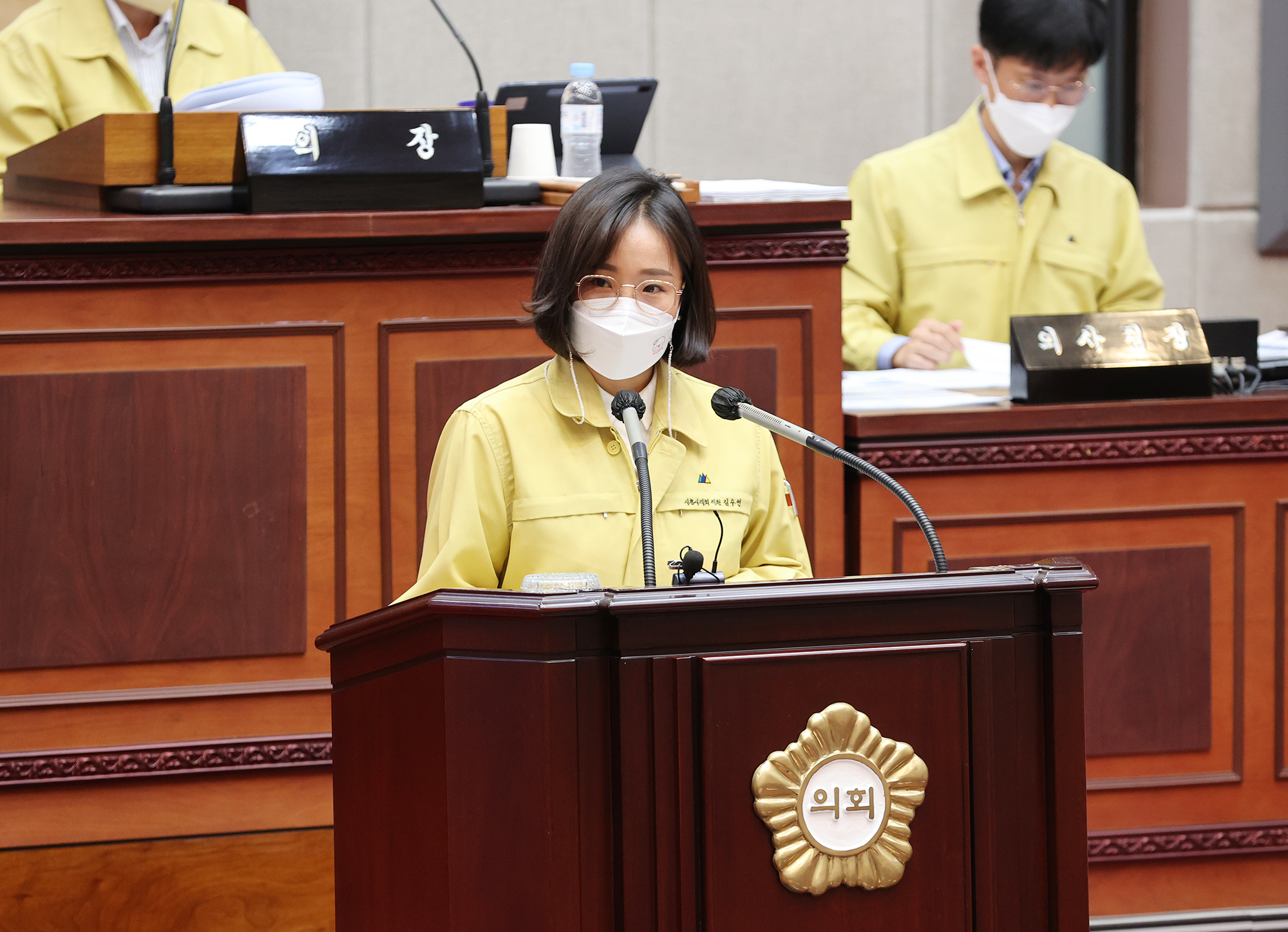 이날 의사일정 상정에 앞서 김수연 의원은 지난 양성평등주간 기념행사에서 있었던 불미스러운 일을 언급하며 “시흥시 여성 정책의 전면적인 재검토와 분석이 필요하다”고 강조했다. 또한 “우리시가 지정 신청한 ‘여성친화도시’가 가진 의미는 지역 정책에 여성과 남성이 평등하게 참여하는 것에 있다”며 “여성을 비롯한 사회적 약자를 위한 촘촘한 정책을 추진할 것, 여성친화도시에 걸맞는 예산과 인력을 확보할 것, 시흥시만의 특화 사업을 발굴하여 적극적인 정책 추진에 힘쓸 것, 여성친화 도시 재지정을 위해 최선을 다할 것” 등을 주문했다.