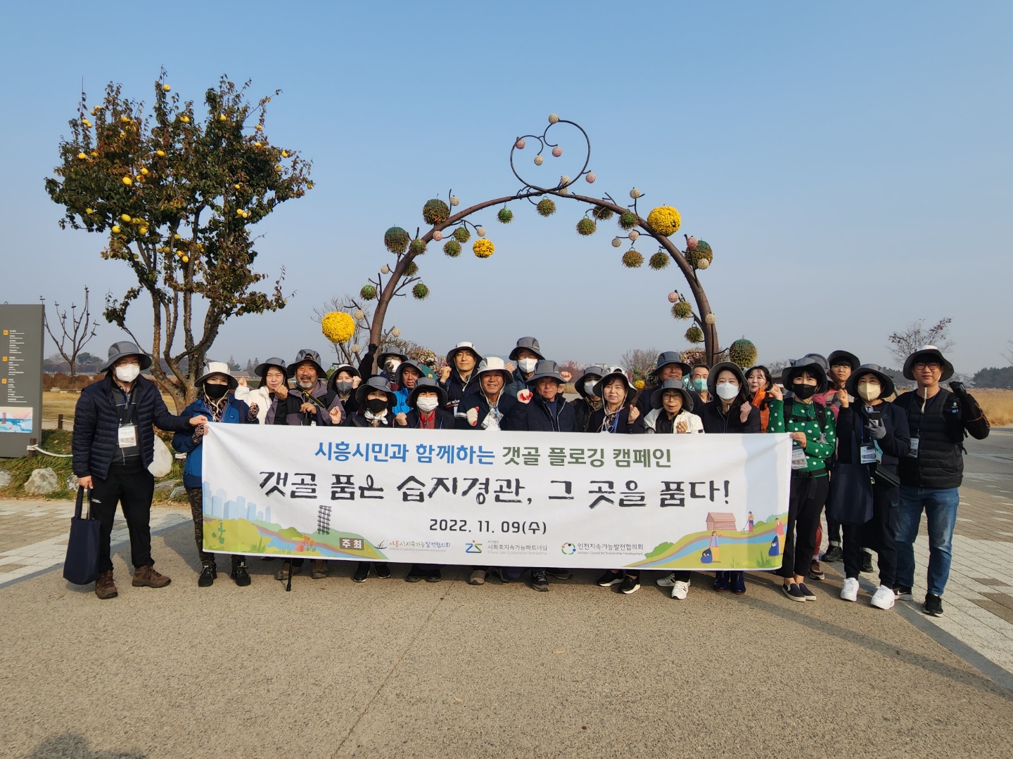 시흥시지속가능발전협의회(공동대표 임병택 시흥시장, 송미희 시흥시의회의장, 이수용 녹색환경 플랫폼 사회적협동조합 이사장/이하, ‘시흥시지속협’)는 (사)시화호지속가능파트너십, 인천지속가능발전협의회로 구성된 「시흥갯골∙소래습지 공동 보존과 활용을 위한 Working Group」의 공동 주관으로, 지난 9일 갯골생태공원 일대를 플로깅하는 ‘갯골 품은 습지 경관, 그 곳을 품다!’ 캠페인을 개최했다.
