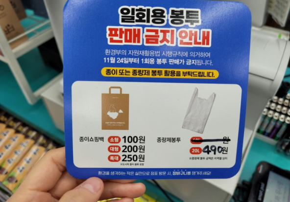 오는 24일부터 편의점·제과점 등에서 비닐봉투 사용이 금지된다. 뿐만 아니라 카페나 음식점에서 일회용 종이컵과 플라스틱 빨대 등을 사용할 수 없게 된다. 백화점이나 대형마트의 우산 비닐 사용도 금지된다.