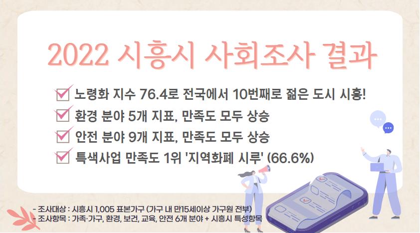 ‘2022 시흥시 사회조사 보고서’의 자세한 내용은 시흥시청 누리집(www.siheung.go.kr)에 접속해 열린행정-시흥통계-사회조사보고서를 통해 누구나 열람할 수 있다.