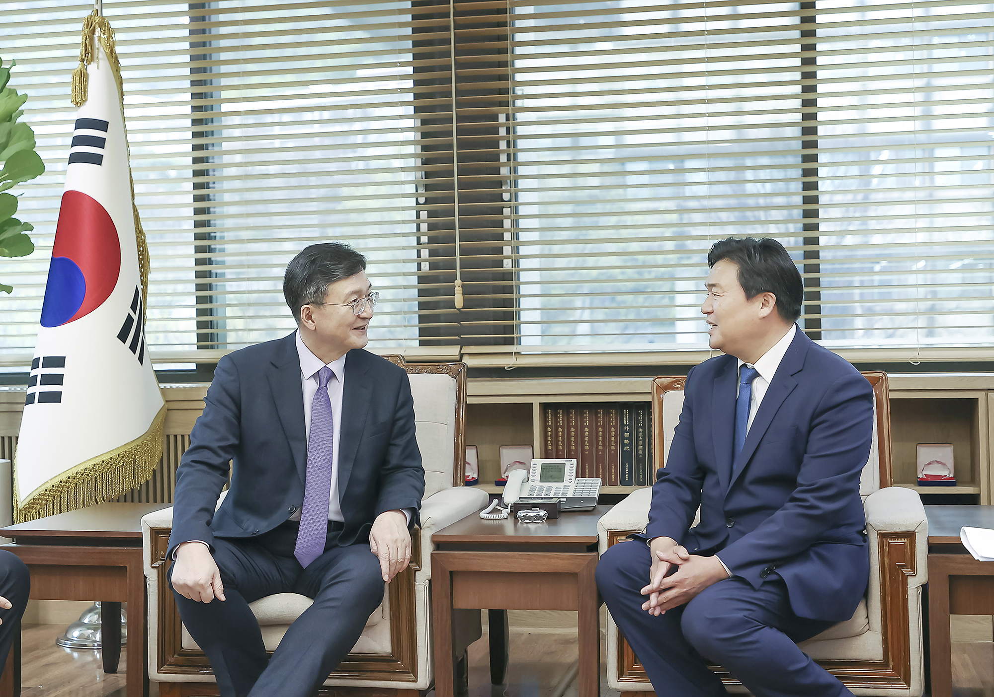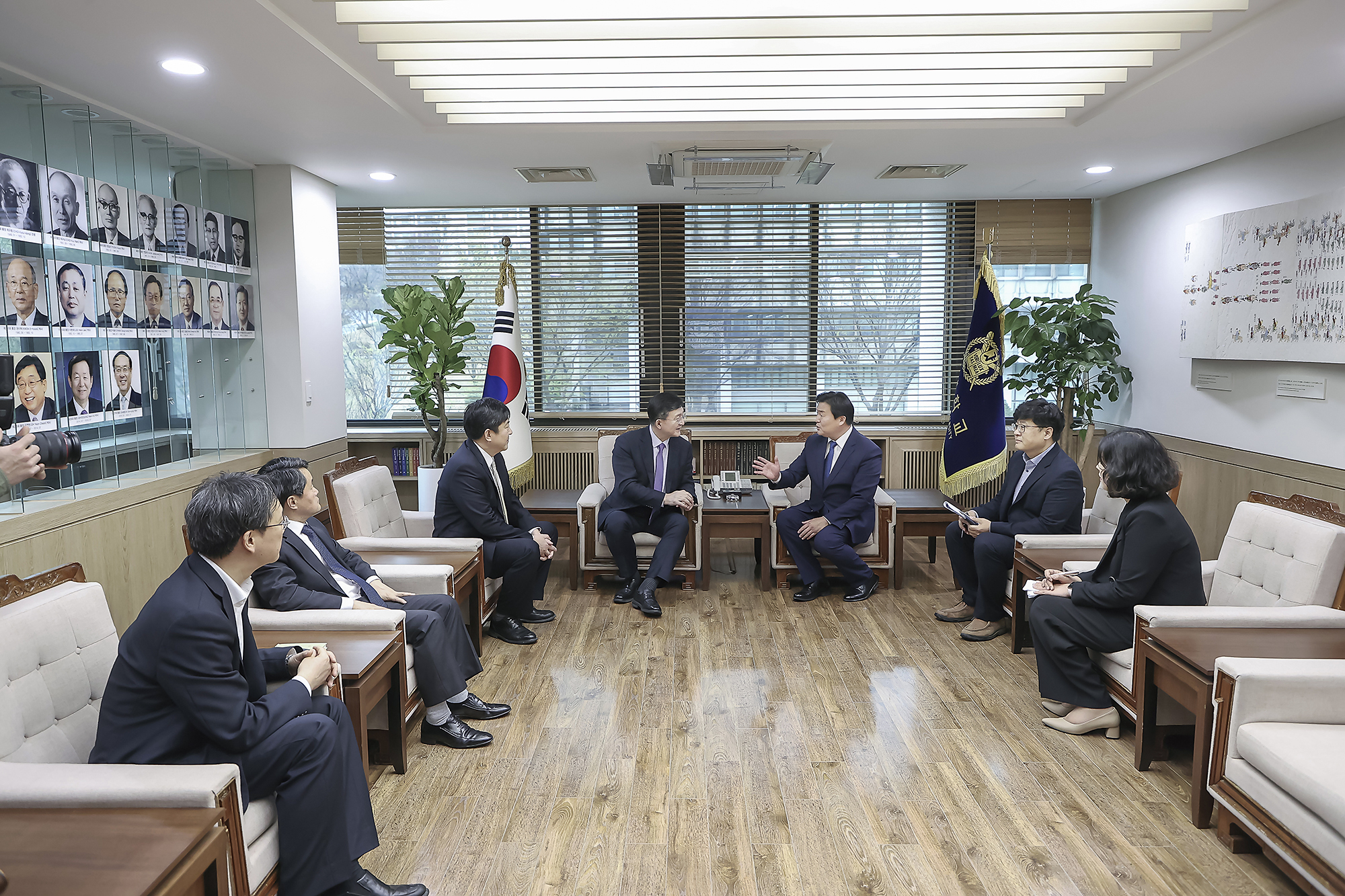 임병택 시흥시장이 지난 5일 서울대 관악캠퍼스에서 유홍림 서울대 신임 총장을 만나 시흥시와 서울대 협력사업 추진 방안에 대해 논의했다. 이날 유 총장 취임 후 가진 첫 공식만남에서 두 기관은 그간 추진해온 협력사업에 대한 의지를 재확인하고, 각론에 대해 논의했다.