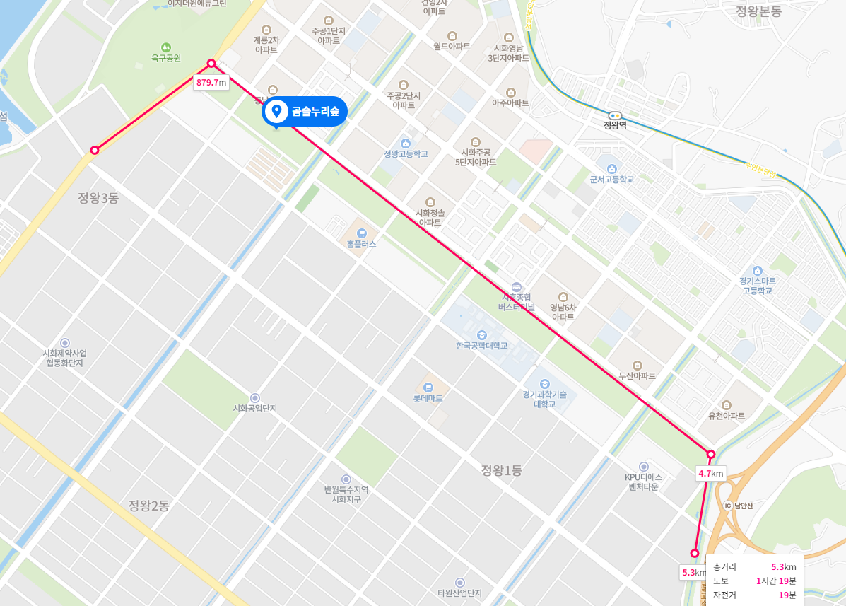 정왕동 중앙완충녹지 산책로(직선길이 약 4km)에 154K 볼트의 특고압선이 매설되어 있지만 이 장소에서 한 번도 전자파 측정을 한 적이 없어 시민들이 불안해하고 있다.