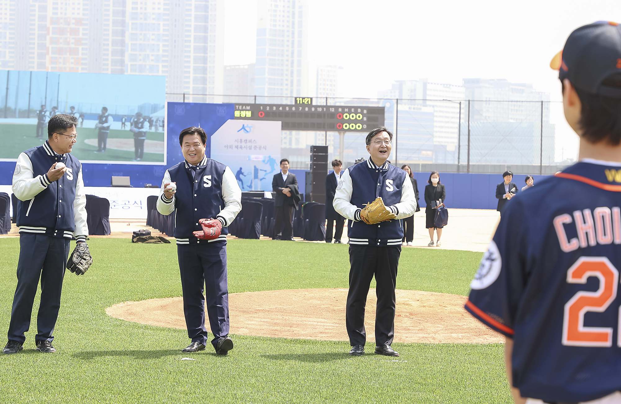 이날 참석자들은 완성된 테니스장과 축구장, 야구장 등을 둘러보며 서울대 시흥캠퍼스가 지역과 상생해 나가는 데 공감대를 나타냈다. 특히 임 시장과 유 총장은 이날 야구장에서 시원한 시구를 선보이기도 했다.