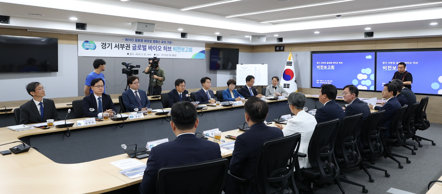 이와 관련, 25일 경기도청에서는 경기도, 시흥시, 서울대학교, 서울대병원, 서울대치과병원, 한국제약바이오협회 등 협력기관과 함께 ‘세계보건기구 글로벌 바이오 캠퍼스’ 유치를 위한 결의를 다지는 ‘경기 서부권 글로벌 바이오 허브 비전 보고회(이하, 보고회)’가 열렸다.
