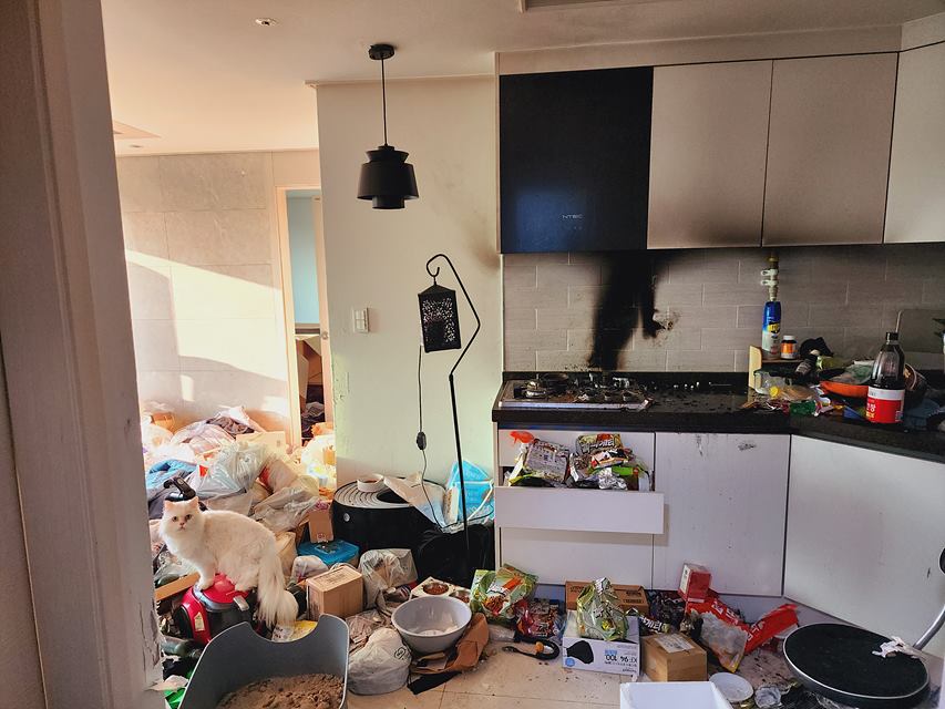 불은 출동한 소방대에 의해 진화됐으며, 주방 벽면 일부가 그을리고 가스레인지와 냄비 등 일부가 소실됐다. 다행히 인명피해는 없었다. 화재조사 결과, 불이 난 가스레인지는 원터치 점화 방식으로 가정에서 키우던 고양이가 싱크대 위에 있는 사료를 먹기 위해 뛰어오르던 찰나 가스레인지 점화 레버를 밟고 미끄러지면서 점화 스위치가 작동한 것으로 밝혀졌다.