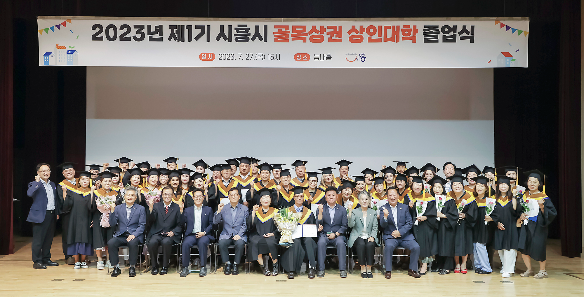 시흥시(시장 임병택)는 지난 27일 시청 늠내홀에서 상인대학 졸업식을 개최했다.