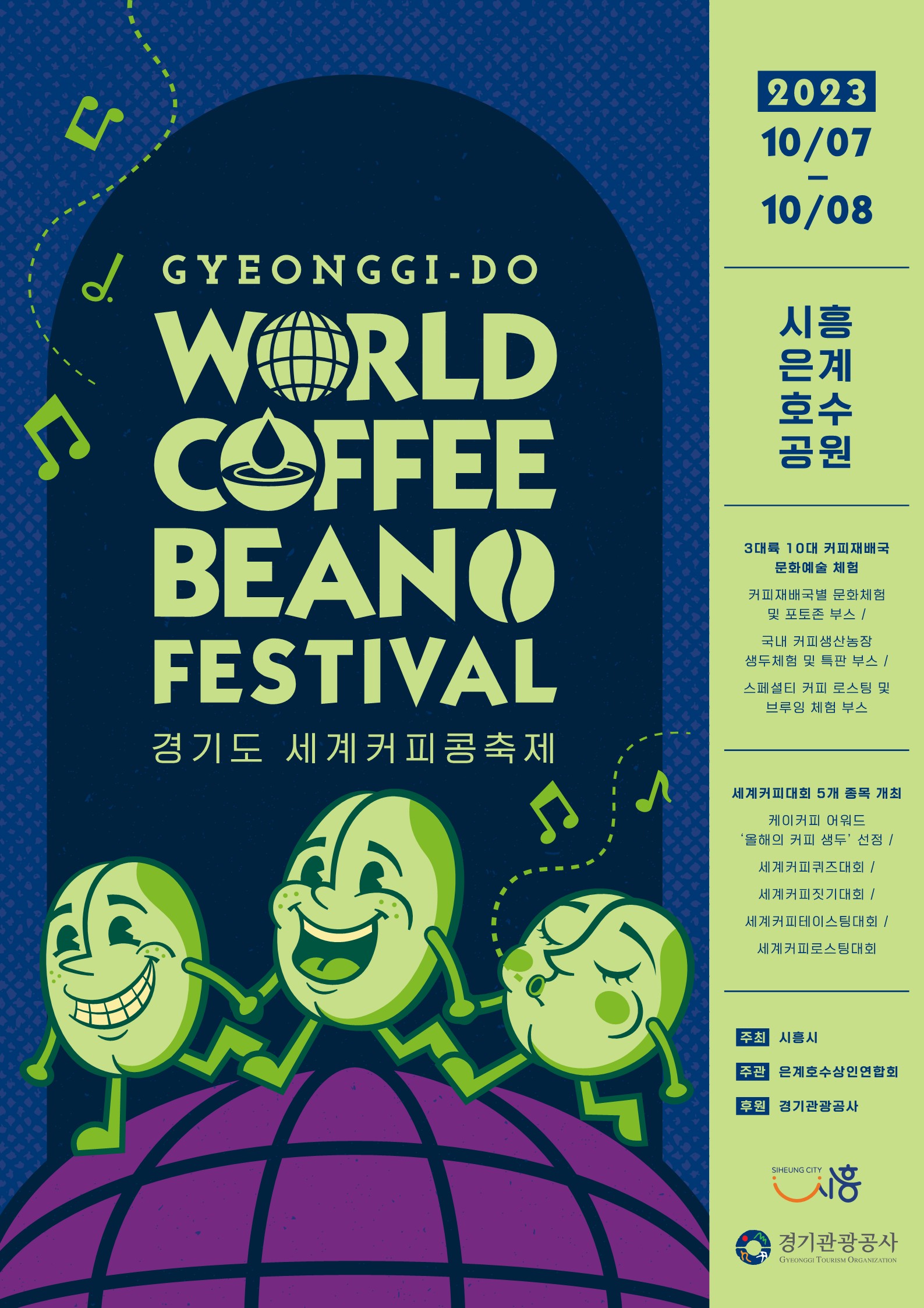 시흥시(시장 임병택)는 ‘제1회 경기도 세계 커피콩’ 축제가 오는 10월 7일부터 8일까지 시흥 은계호수공원에서 개최된다고 지난 6일 밝혔다.