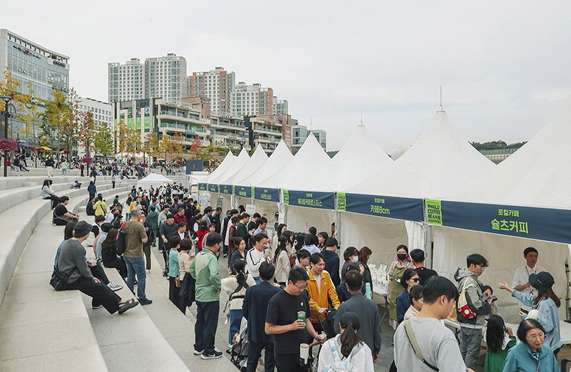 주말을 맞아 은계호수공원을 찾은 시민들은 커피로스팅, 핸드드립 등 다양한 체험을 하며 가을을 즐겼다. 국내 커피생산농장 생두부터 스페셜티 커피까지 세계 각국에서 생산된 커피향이 은계호수공원을 가득 메웠다.