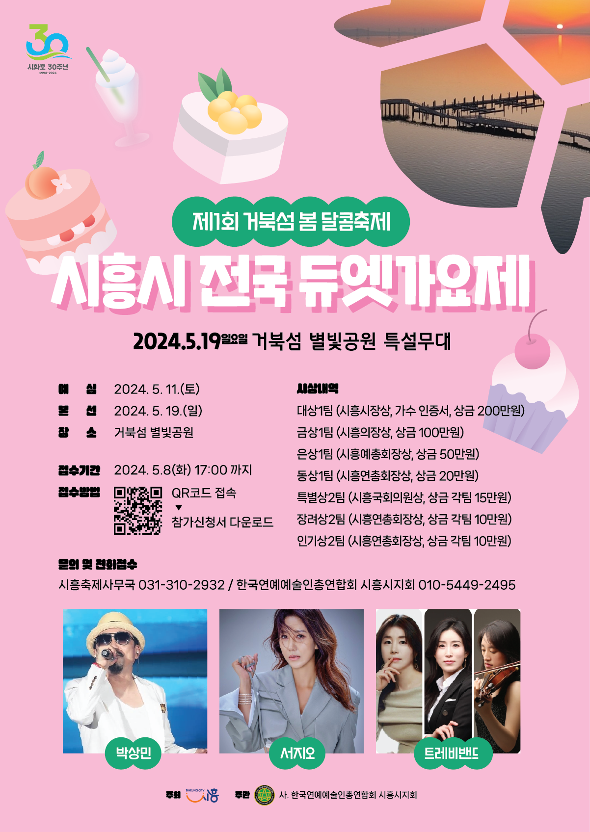 시흥시(시장 임병택)가 5월 17일부터 19일까지 거북섬 별빛공원에서 개최되는 2024 제1회 거북섬 봄 달콤 축제에서 ‘전국 듀엣가요제’를 개최한다고 밝혔다.