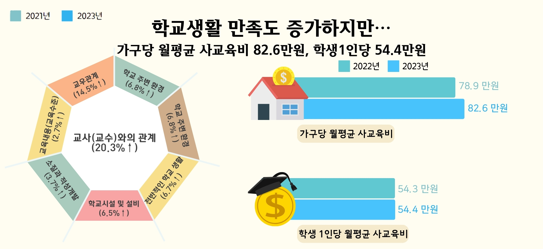 학교생활 만족도 증가하지만사교육비도 꾸준히 늘어