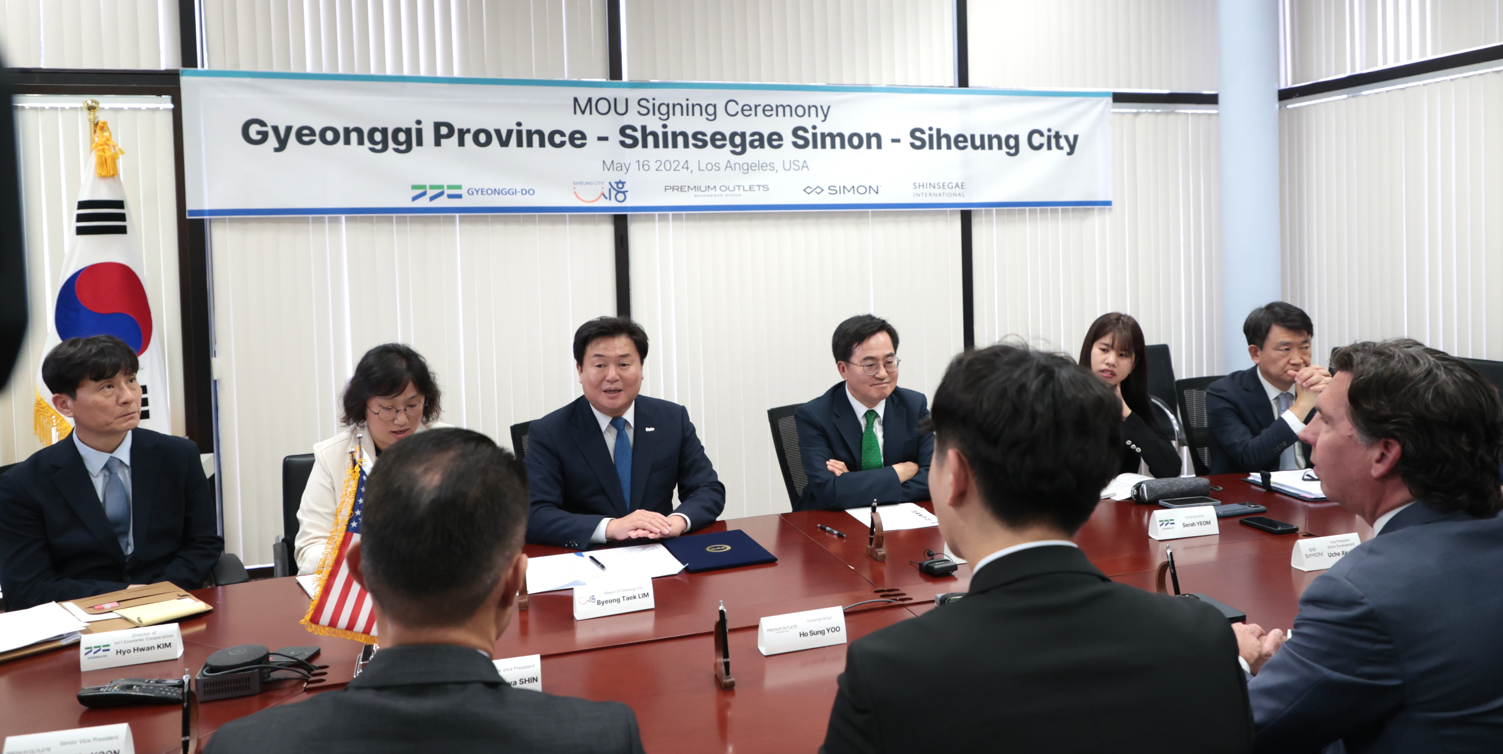 경기도(지사 김동연)와 함께 방미 일정을 진행 중인 시흥시(시장 임병택)가 16일(현지시간) 로스앤젤레스무역관(LA, 캘리포니아주)에서 ‘경기도-시흥시-㈜신세계사이먼’과 약 1천억 원 규모의 투자유치 협약을 체결했다고 밝혔다.