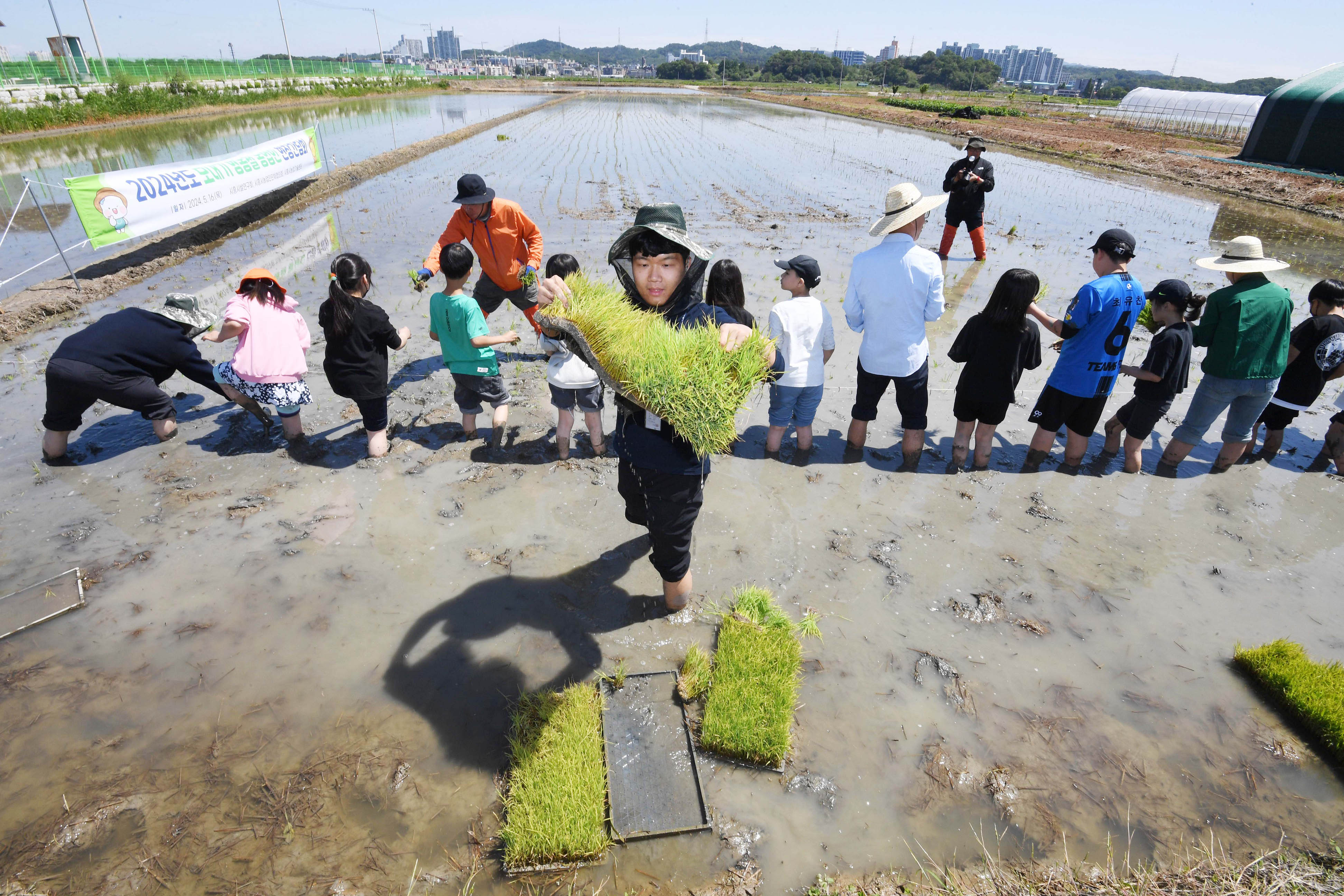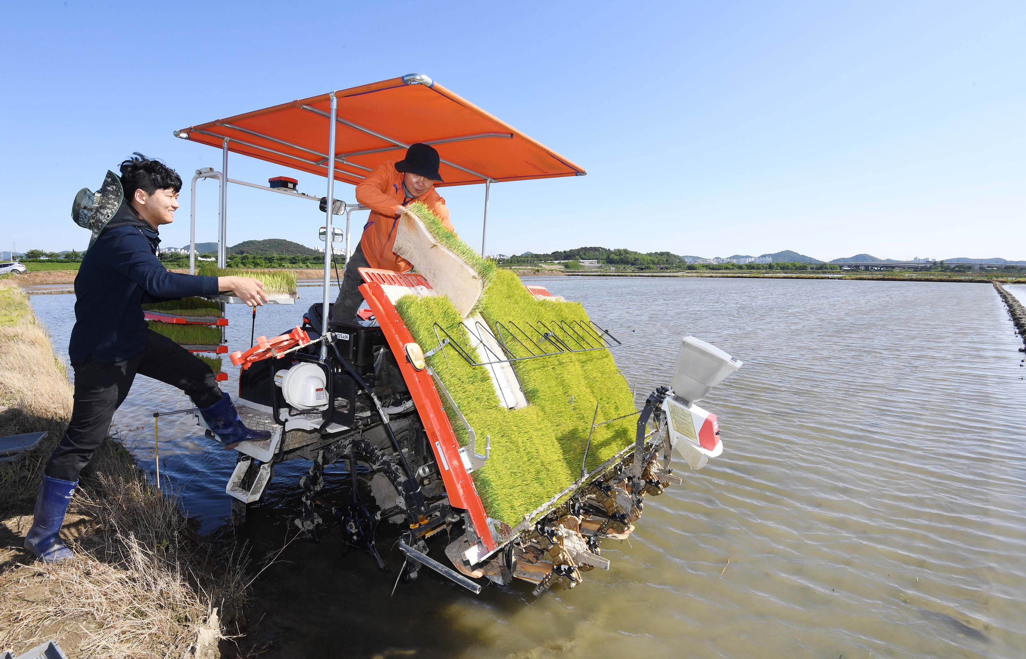화창한 봄 햇살로 더욱 반짝이는 드넓은 곡창지대, 호조벌에 1년 벼농사의 핵심인 모내기 작업이 본격적으로 시작됐다.