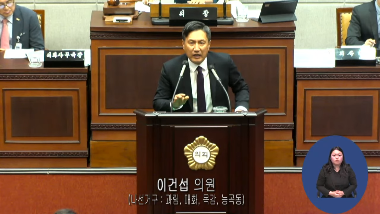 이건섭 의원은 지방채 발행 동의안에 대해서 원천적으로 찬성한다고 말하면서 절차적인 위반에 대해 지적했다. 작년까지만 해도 지방채 발행에 대한 계획이 없다고 했는데 5월 초에 갑자기 의결을 해 달라고 했다며, 의회는 법과 원칙을 지키는 곳이지 동창회 모임이 아니라고 했다. 특히 지방채 발행은 목적이 있어야 되는데 시장이 의회와 목적에 대해 의논해 본적이 있느냐고 목소리를 높였다.