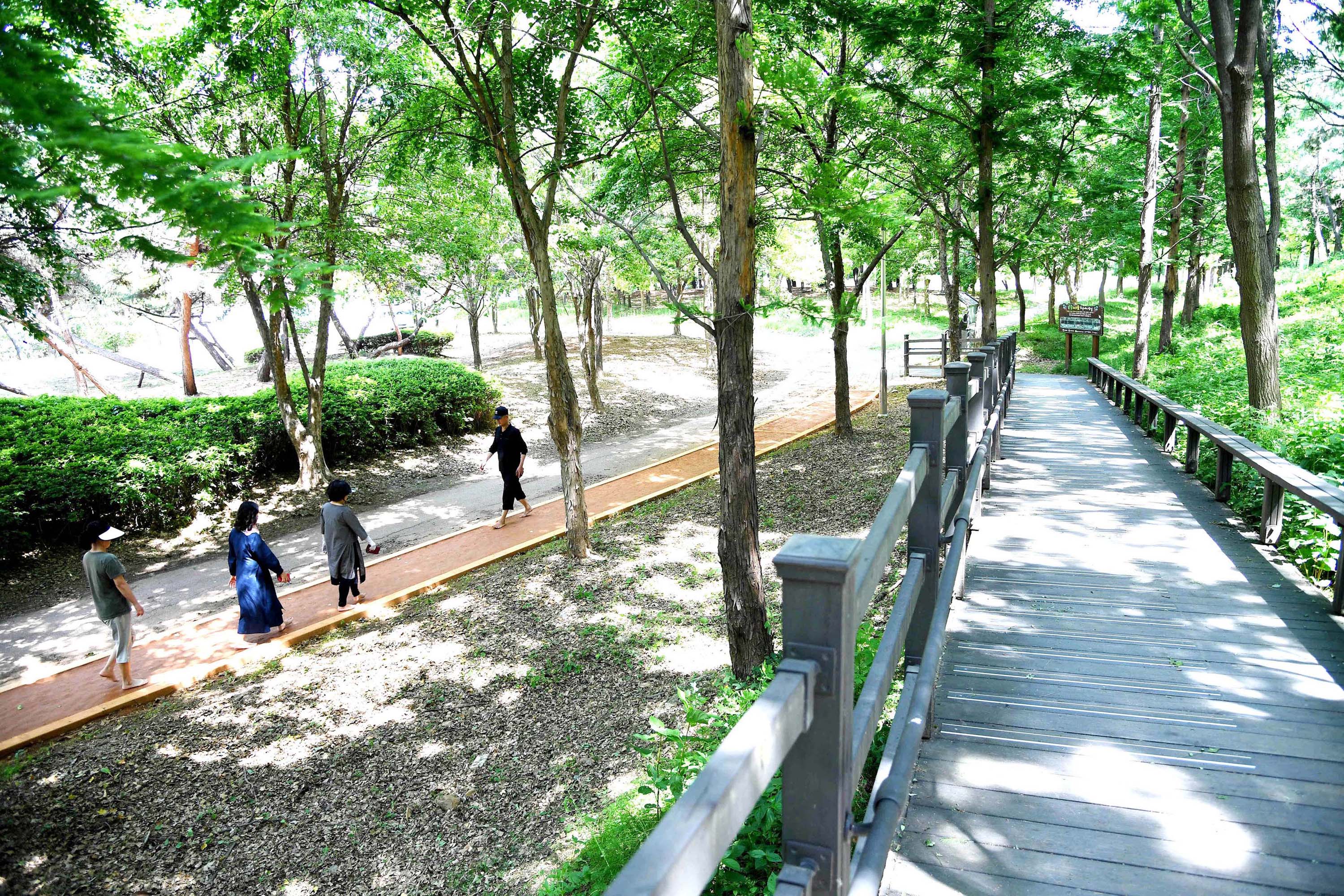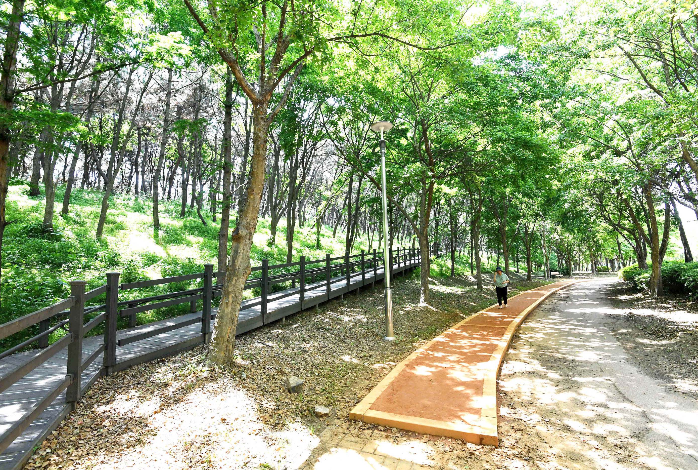 푸른 녹음이 짙은 숲의 풍경이 더없이 청량한 오월, 도시에서 풍성한 자연을 만끽할 수 있는 시흥시 곰솔누리숲은 몸과 마음을 치유하는 산책길로 시민들에게 인기다.