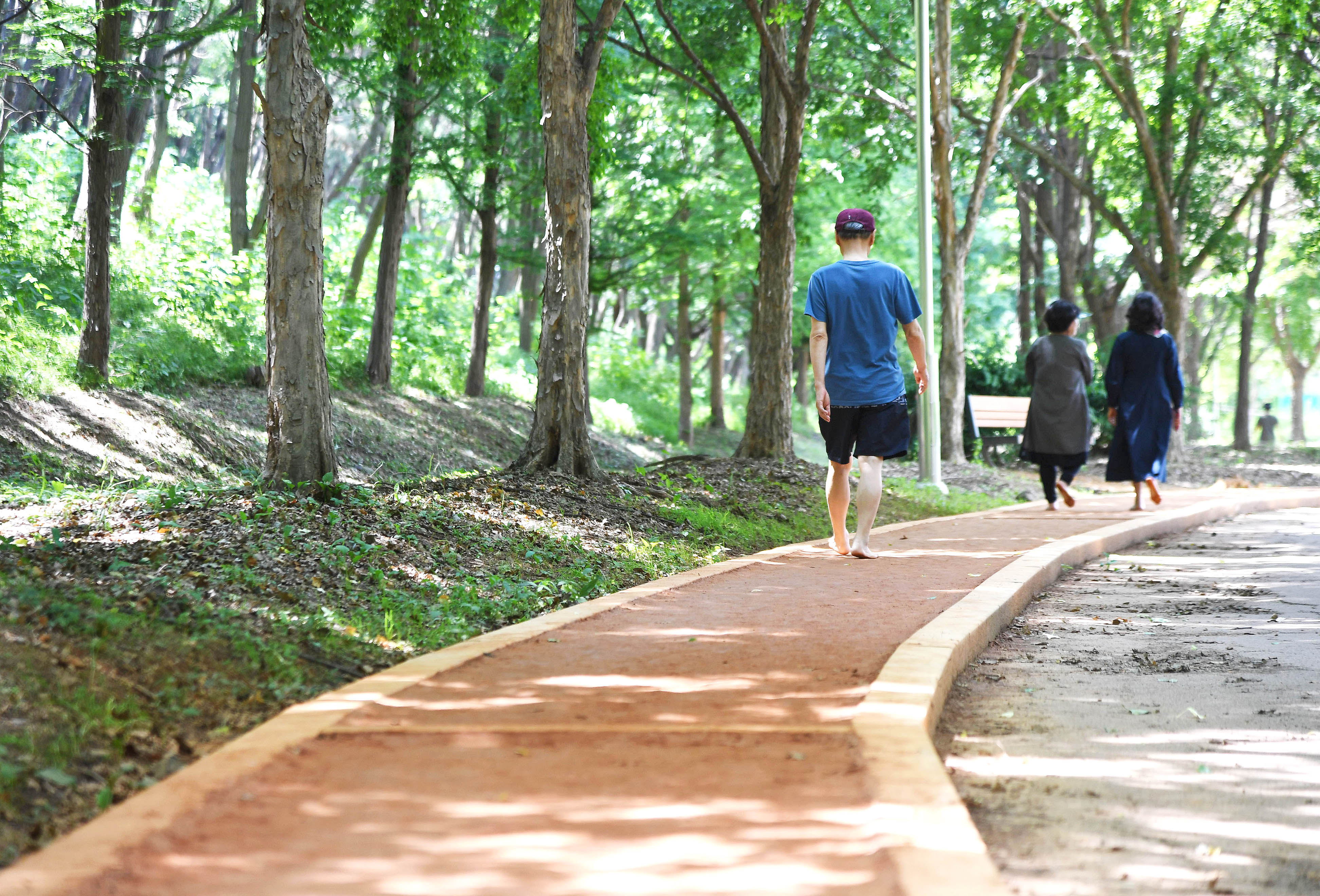숲이 내뿜는 신선한 공기를 마시며 산책하다 보면 만나게 되는 황톳길. 누구나 안전하게 맨발로 걸을 수 있도록 조성돼 있어 부담 없이 즐길 수 있다. 맨발로 한 걸음, 한 걸음 디디다 보면 땅속의 정기가 온몸에 가득 퍼지는 기분이다. 발바닥 지압을 통해 상쾌함을 만끽할 수 있어 심신의 피로가 풀리고 편안한 표정이 절로 새어 나온다.
