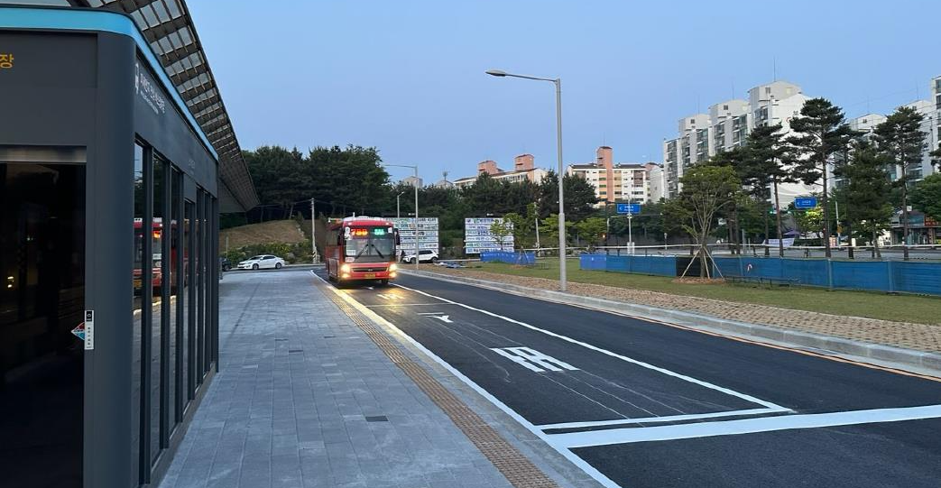 이에 따라 시는 4월 22일부터 6월 2일까지 공사를 진행했다. 공사 기간에는 안전사고 예방을 위해 기존 버스 정류소를 폐쇄하고 임시 버스 정류소를 운영했다. 이번 개선 사업에서는 기존 보도의 폭을 2m에서 5m로 확장해 버스 승하차객의 보행환경을 개선했고, 크랙 및 도로 파임(포트홀) 등으로 인해 버스 주행이 어려웠던 차도의 전면 재포장, 완충녹지 측 보도 공간 확충도 함께 진행했다.